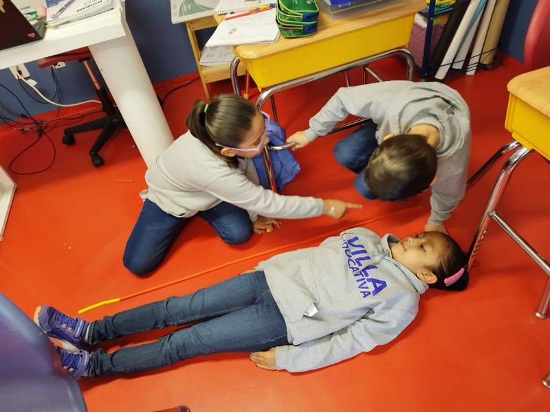 El reto comenzó cuando nos dividimos en pequeños grupos y comenzamos a medirnos entre nosotros y, como algunos somos tan altos, no nos dábamos abasto con las regletas de un solo color o tamaño; así que tuvimos que combinarlas. Esto nos permitió hacer comparaciones y descubrir cómo los objetos o personas pueden tener diferentes tamaños según la unidad que usemos para medirlos.