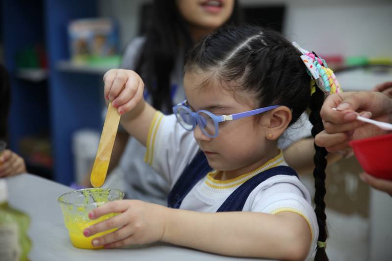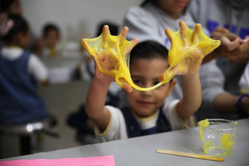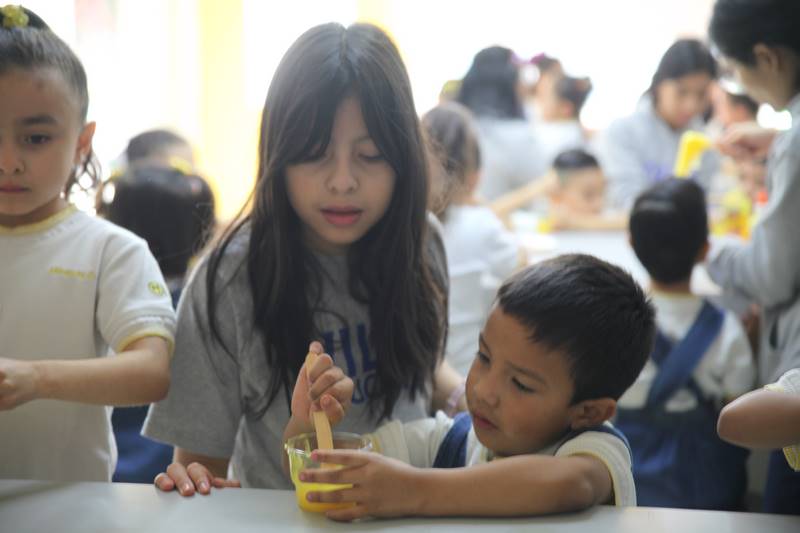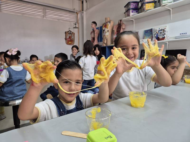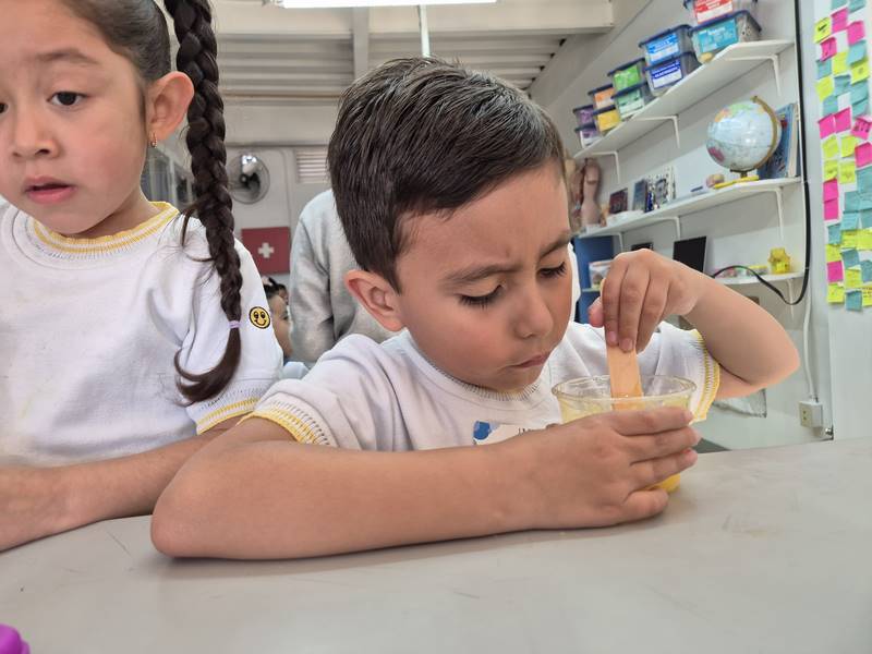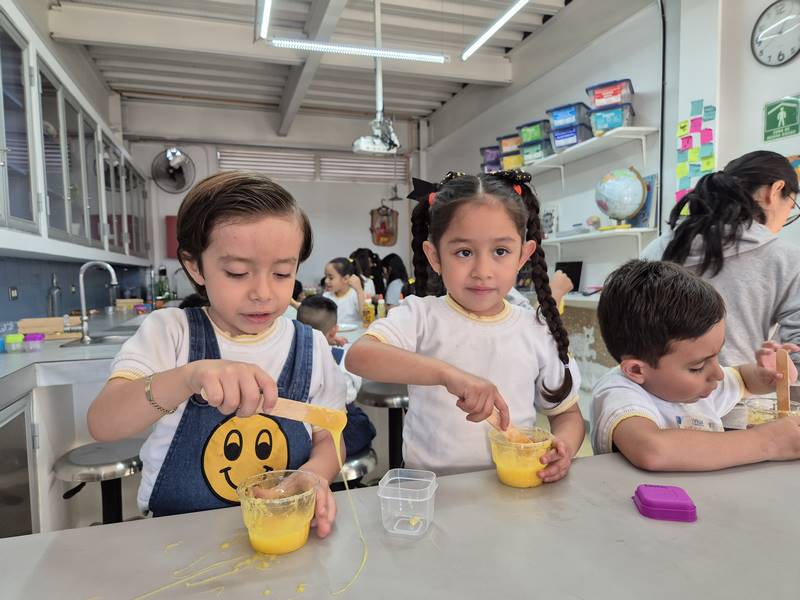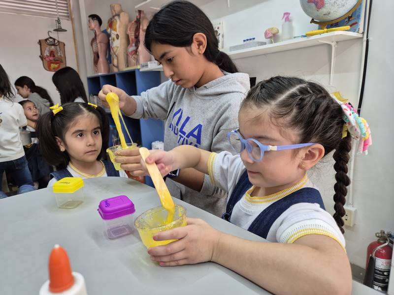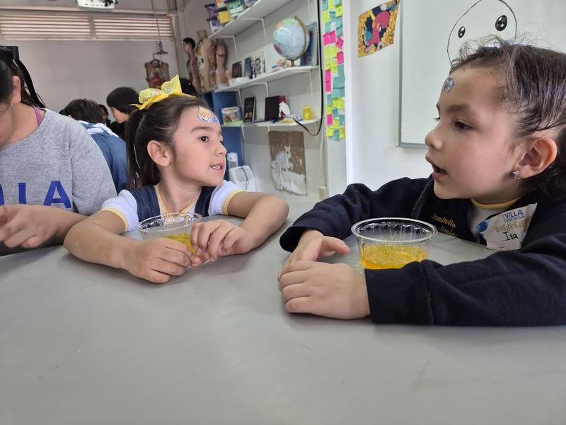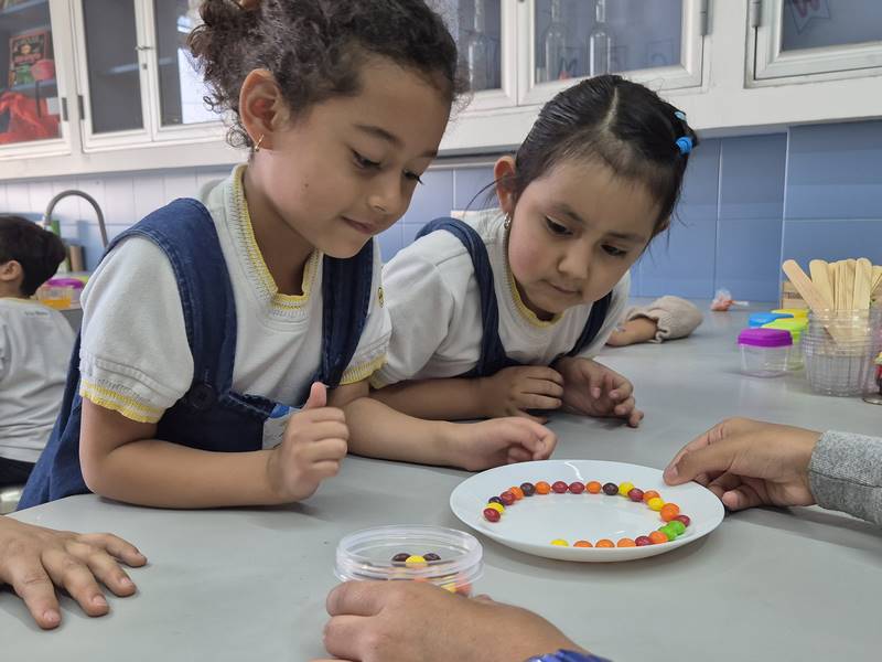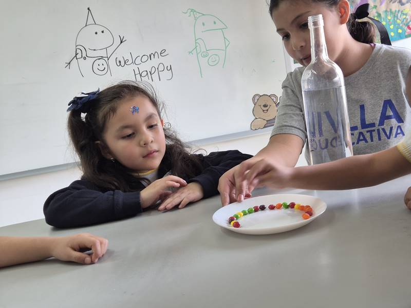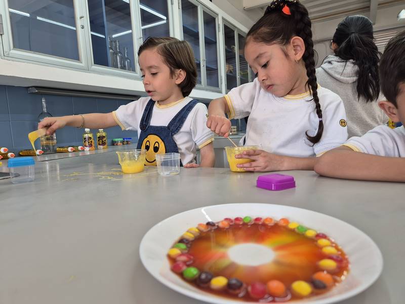 - Laboratorio: Descubrieron la magia de la formación del arcoíris con el experimento de skittles y también realizaron un slime, aprendiendo a seguir indicaciones en inglés.