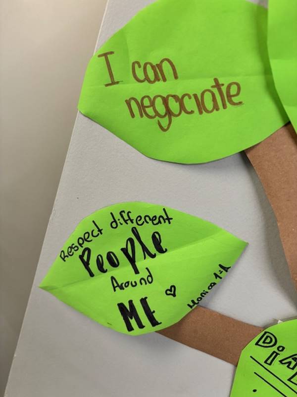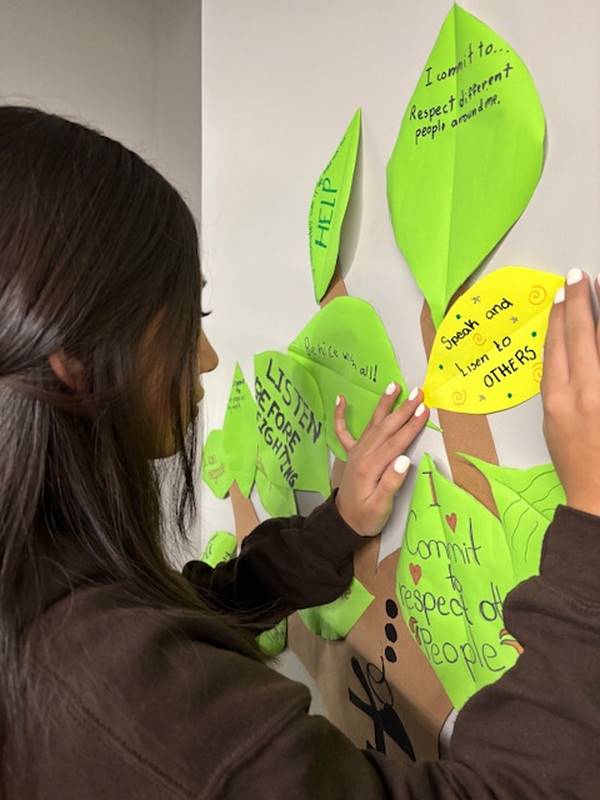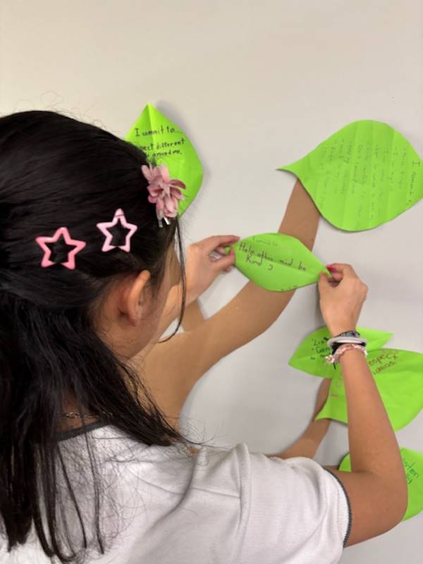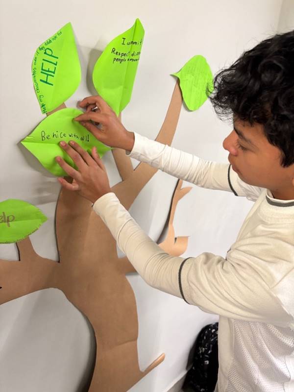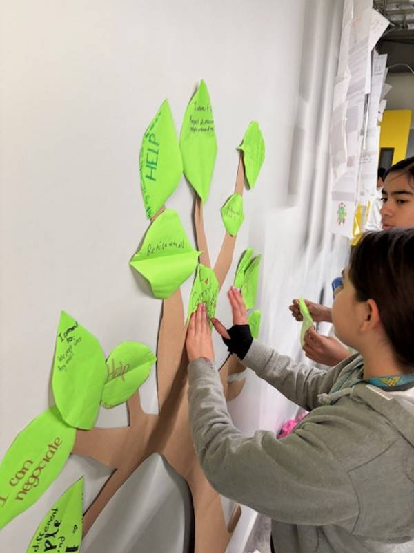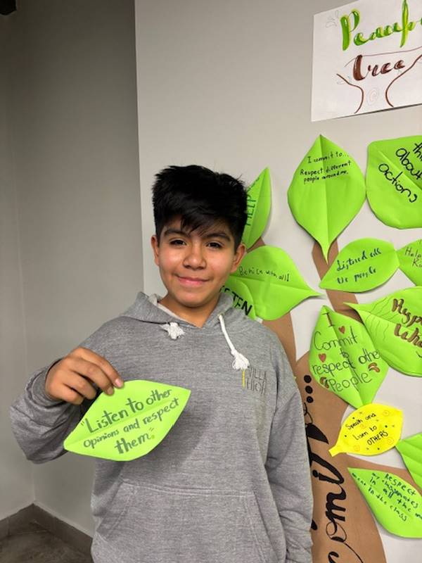 Para reforzar lo aprendido, los alumnos realizaron la actividad del Árbol de la Paz, donde cada uno escribió en una hoja su compromiso para mejorar la convivencia y la comunicación y luego la colocó en las ramas de un árbol. Así como un árbol crece fuerte con hojas sanas, nuestra comunidad escolar se fortalece con cada acción basada en el respeto y el diálogo.