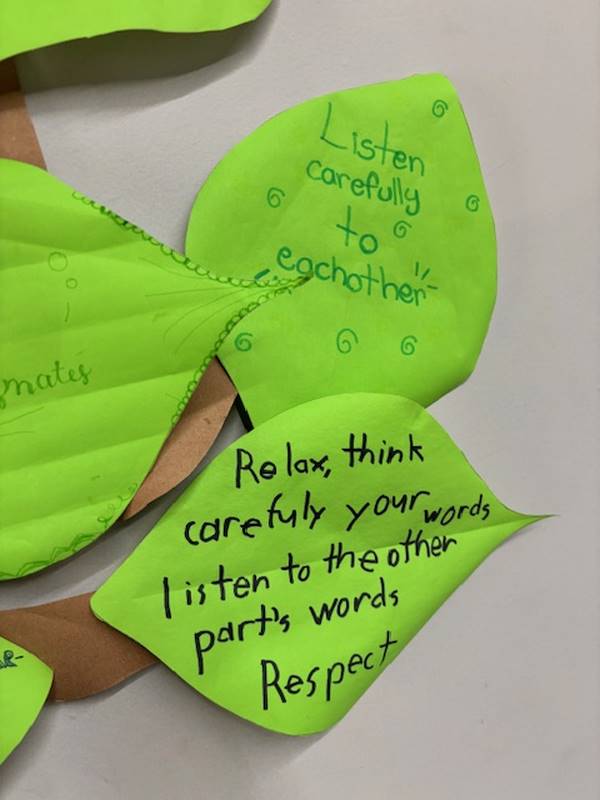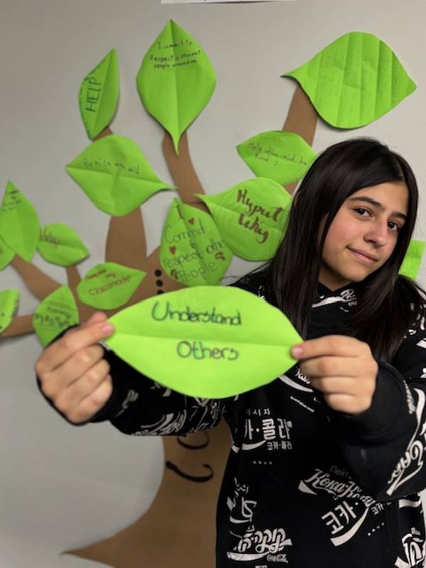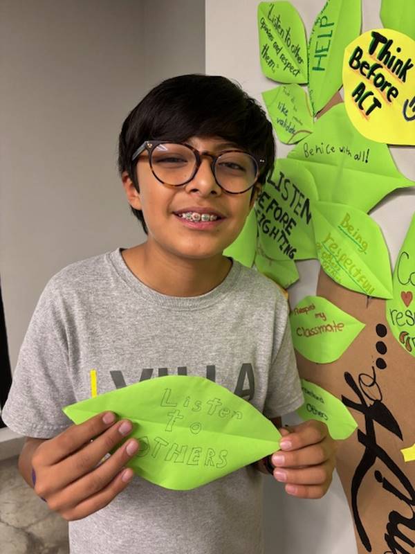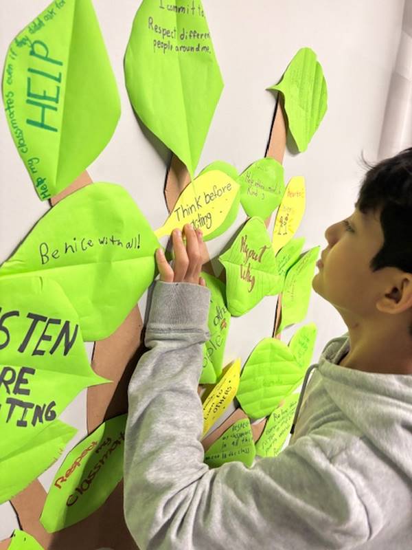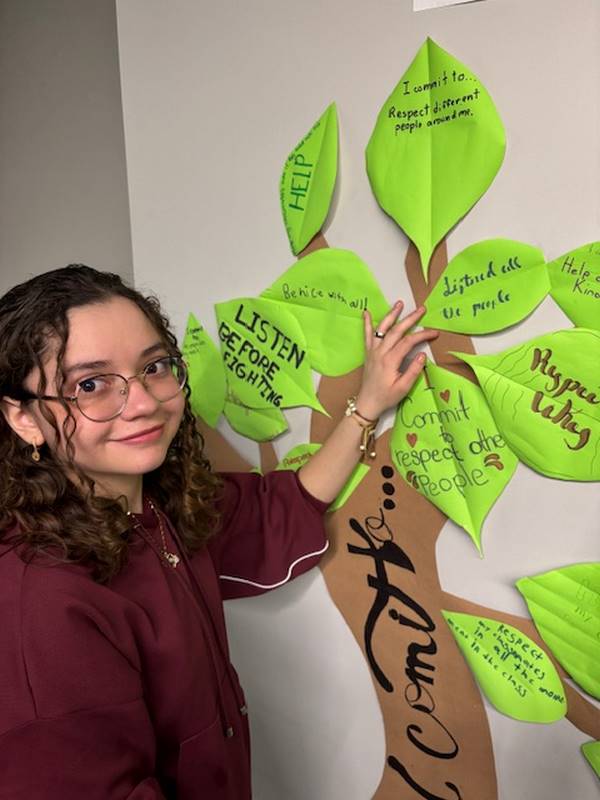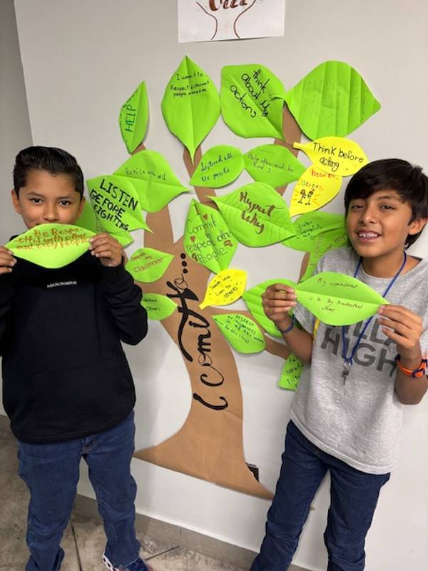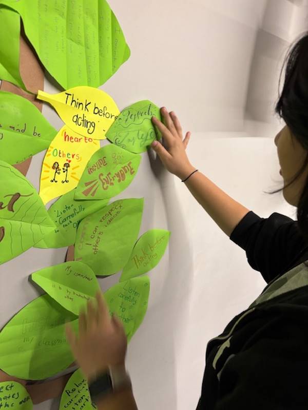 Para reforzar lo aprendido, los alumnos realizaron la actividad del Árbol de la Paz, donde cada uno escribió en una hoja su compromiso para mejorar la convivencia y la comunicación y luego la colocó en las ramas de un árbol. Así como un árbol crece fuerte con hojas sanas, nuestra comunidad escolar se fortalece con cada acción basada en el respeto y el diálogo.