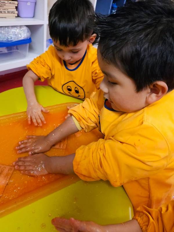 Los alumnos de K1 tuvieron un día lleno de diversión y aventura en el que el color naranja fue el protagonista. Los pequeños pudieron asistir con ropa o accesorios de este color y realizaron actividades sensoriales con gelatina, pintura y agua.