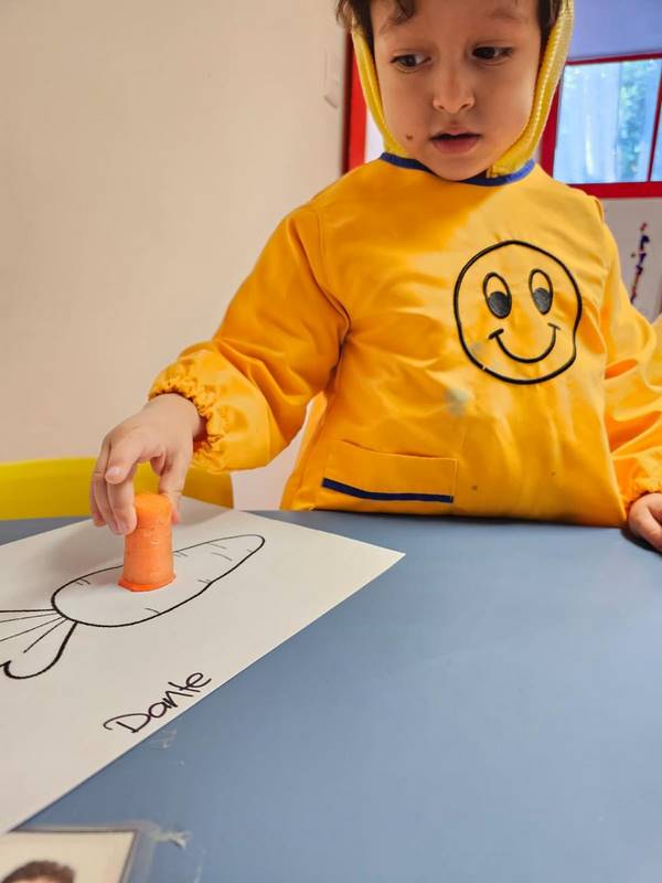 Observaron cómo era una zanahoria, sus pequeños detalles y cómo se veía por dentro y fuera. Posteriormente, utilizaron esta zanahoria y diferentes materiales para pintar de color naranja mientras se practicaban habilidades de motricidad fina y coordinación.