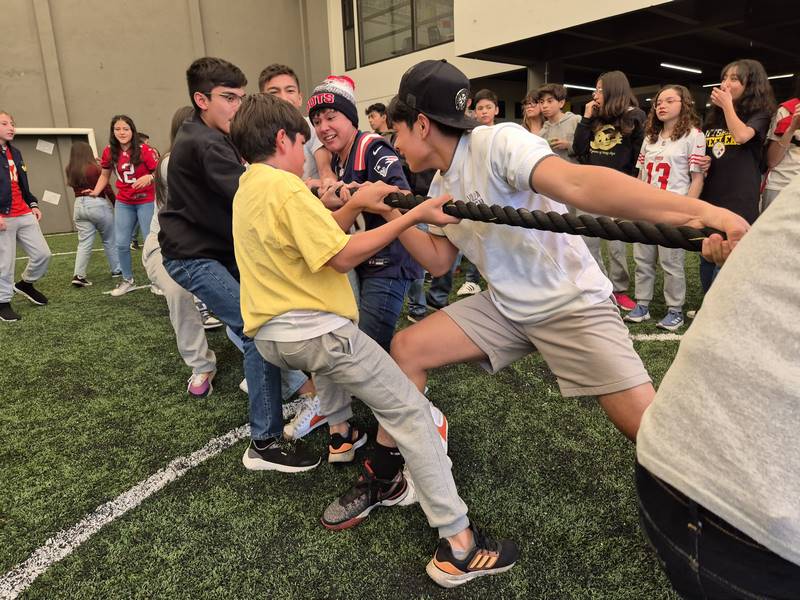Como parte de las actividades lúdicas y de integración de la comunidad de Villa High, el pasado 7 de febrero tuvimos nuestro evento «Super Bowl Party». En el primer descanso, los alumnos jugaron y practicaron en estaciones en las cuales debían poner a prueba sus habilidades en fútbol americano con dinámicas de destreza, precisión y fuerza. Una vez que se adaptaron a ellas, participaron en el segundo descanso para representar a su casa y obtener puntaje para el Proyecto de las Casas.