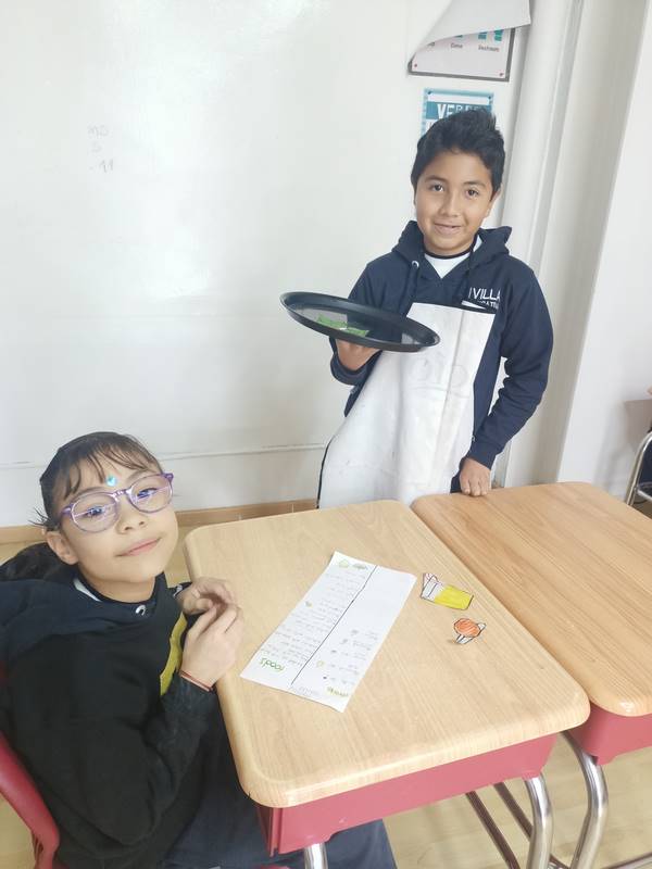 Durante el proyecto, cada estudiante asumió un rol diferente, como mesero, chef o cliente, usando palabras de las listas de vocabulario 5 y 6 (de comida y bebidas).