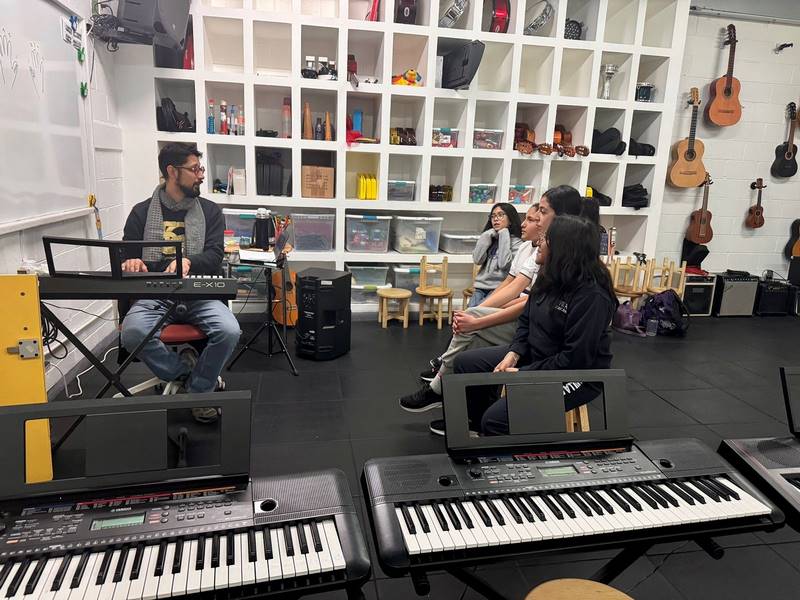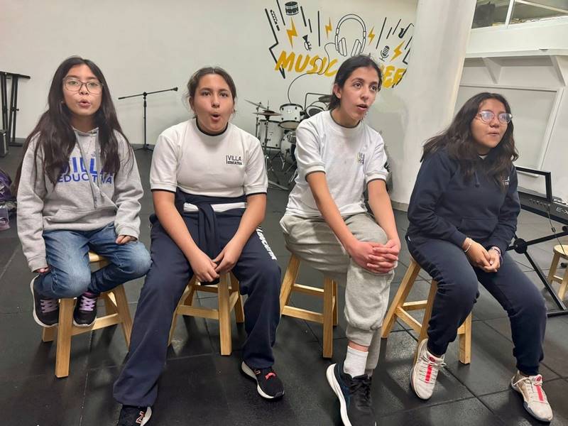 En nuestra clase de canto de Afterschool, nuestras estudiantes de primaria alta y Villa High exploran las posibilidades de sus voces. Durante nuestros ejercicios de respiración y técnica vocal, van descubriendo gradualmente su capacidad para alcanzar nuevas notas y colocaciones. Las sesiones se han convertido en un espacio donde, además de desarrollar habilidades técnicas, podemos expresarnos libremente y aprender en conjunto.