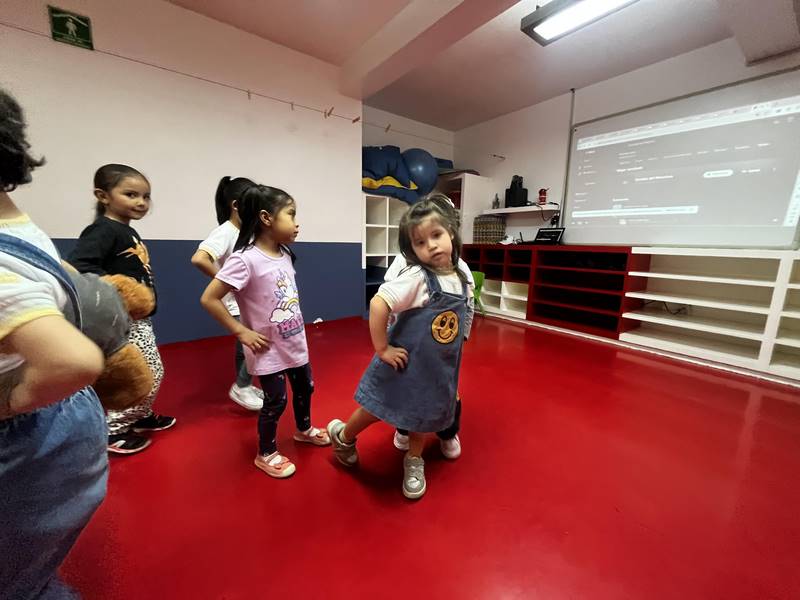 Al ritmo de “El Lobo y Doña Blanca”, nuestras pequeñas bailarinas y bailarines fortalecieron su motricidad gruesa al danzar tomados de la mano y acoplando la velocidad de sus movimientos al tempo de la melodía.