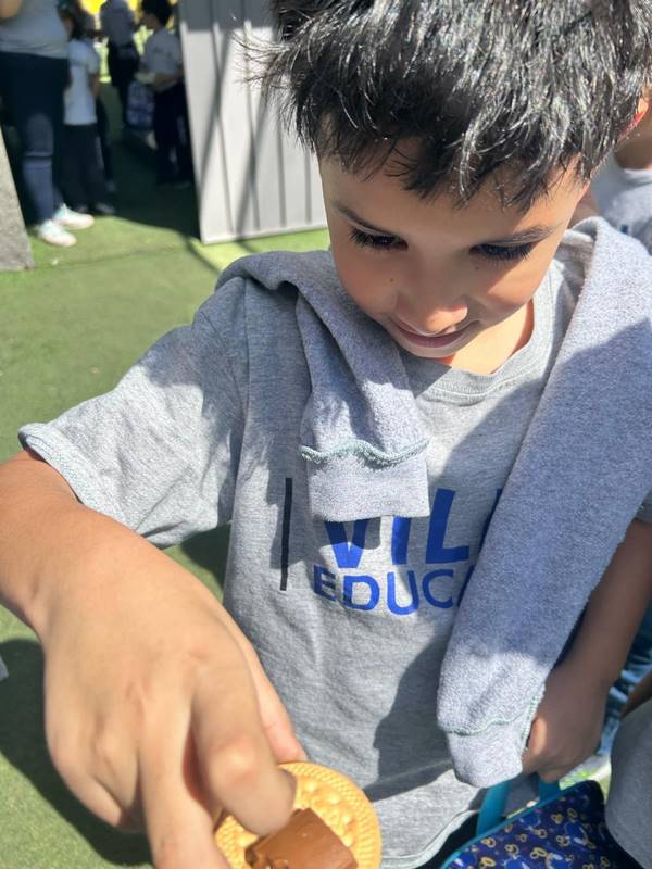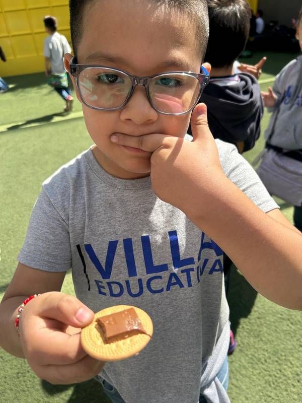 Colocamos un trozo de barra de chocolate sobre una galleta y lo dejamos dentro de nuestro horno durante unos minutos. Cuando terminó nuestro descanso, revisamos nuestras galletas y descubrimos que la mayor parte del chocolate se había derretido. ¡Nos encantó el experimento y disfrutamos comer chocolate!