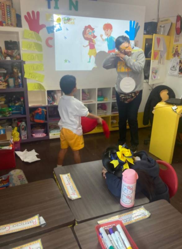 Durante el taller «Somos amables» que creó nuestra psicóloga, los niños tuvieron la oportunidad de representar diferentes situaciones en las que necesitaban resolver conflictos en la escuela. A través del juego de roles, practicaron cómo manejar desacuerdos con compañeros de clase, compartir recursos y comunicarse de manera respetuosa y empática. El objetivo de esta actividad era ayudarlos a desarrollar habilidades para resolver conflictos, aprender a expresar sus sentimientos de manera más consciente y comprender la importancia de la amabilidad y la cooperación para crear un ambiente escolar positivo. Al representar estos escenarios, nuestros niños continúan desarrollando confianza en su capacidad para resolver conflictos pacíficamente y fomentar mejores relaciones con sus compañeros.