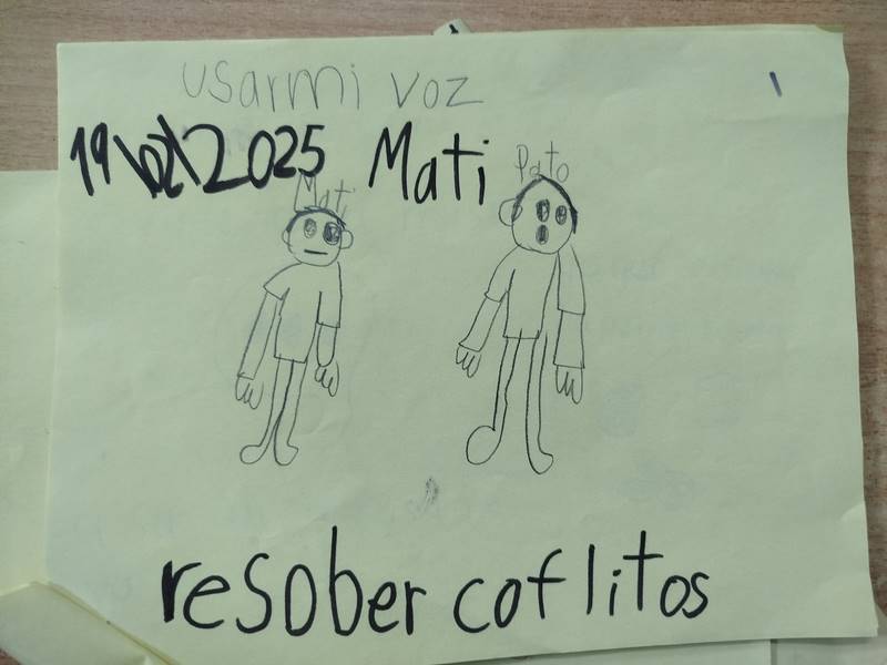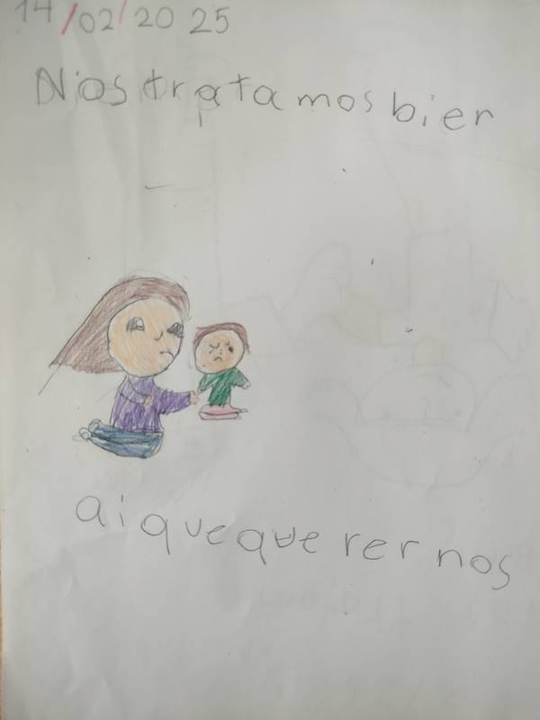 Los niños también realizan dibujos en los que se representan a sí mismos en situaciones cotidianas, proponiendo ideas sobre cómo solucionar conflictos de manera pacífica. Esta actividad artística fomenta la reflexión, la creatividad y la empatía, permitiendo que cada estudiante exprese sus emociones y entienda mejor las de los demás.