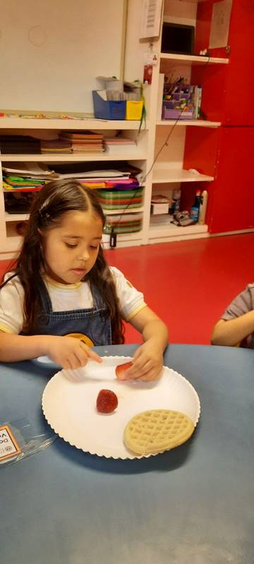 Nuestros niños de Happy se inspiraron para hacer una bella flor utilizando waffles, fresas, lunetas y pasitas con chocolate. Pusieron en práctica su creatividad, habilidades de coordinación, concentración, independencia y seguridad.