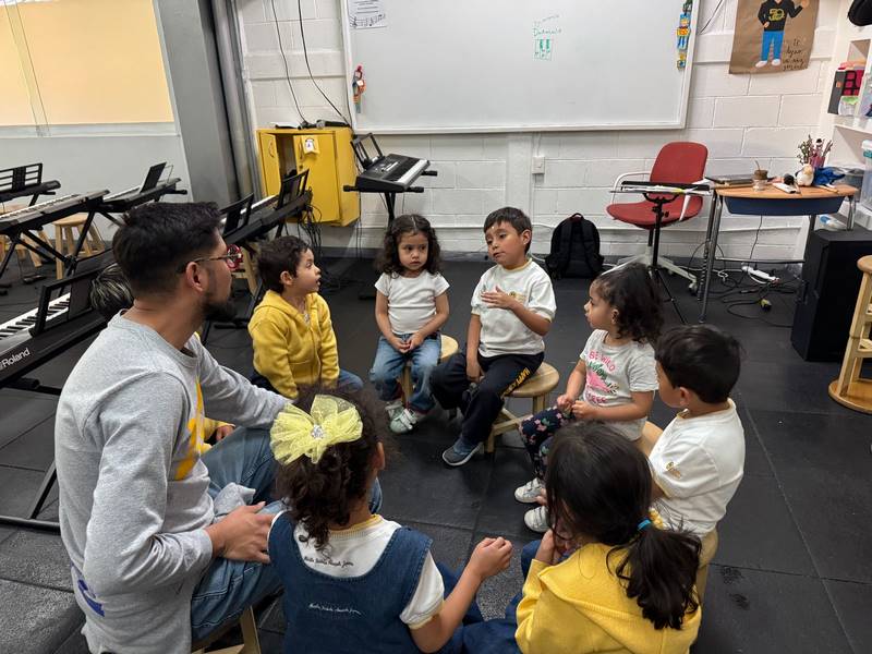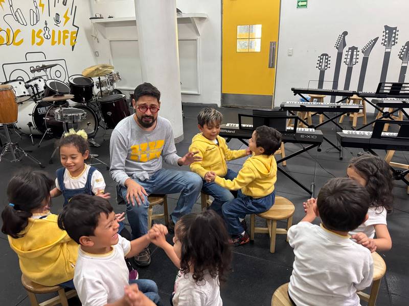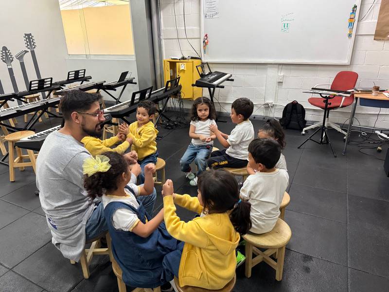 Además, complementamos su aprendizaje con canciones didácticas y la práctica de instrumentos como xilófono, percusiones y ukulele, con lo cual los estudiantes mejoran su concentración y desarrollan habilidades para la escucha y el trabajo en equipo.