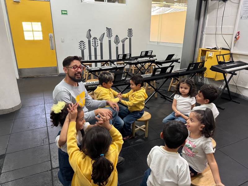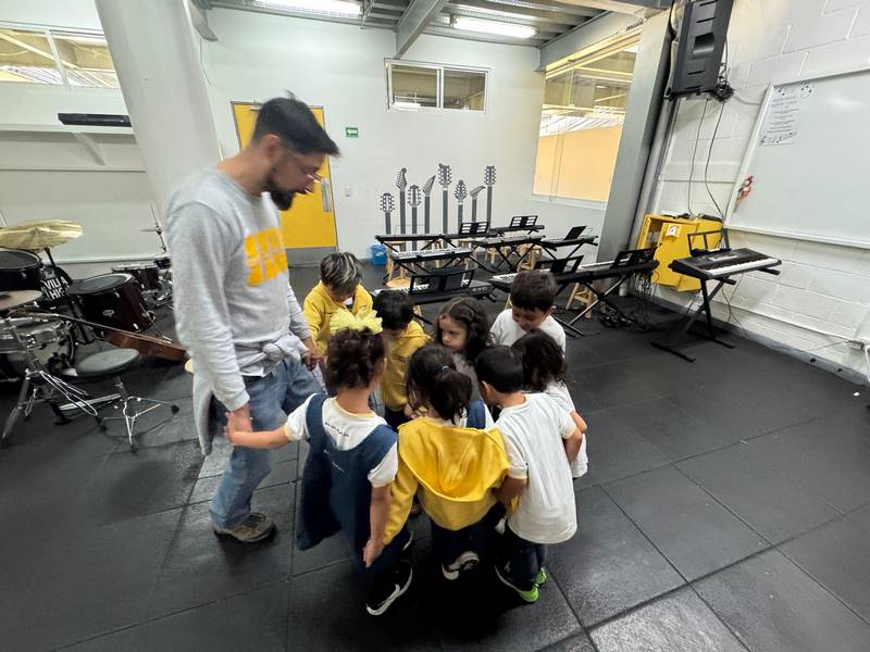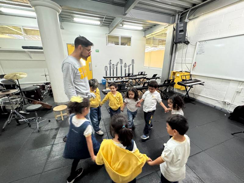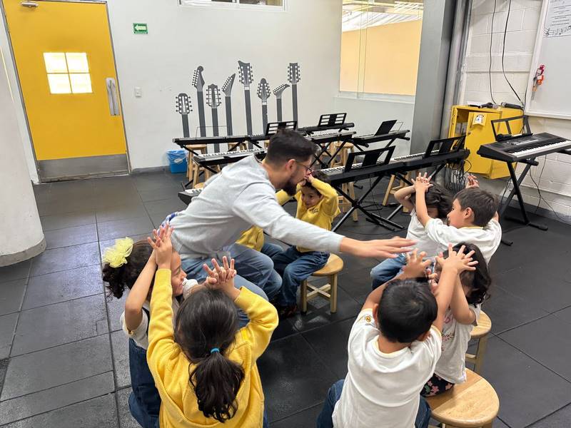 En las clases de música de Club Afterschool, los niños de Kinder 2 y 3 participan en juegos de manos y rondas que mejoran su coordinación, mientras siguen ritmos y melodías didácticas. El objetivo de estas actividades, es fortalecer habilidades fundamentales para el desarrollo cognitivo de las niñas y los niños, como la coordinación motora fina y la memoria.