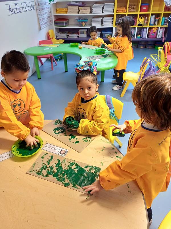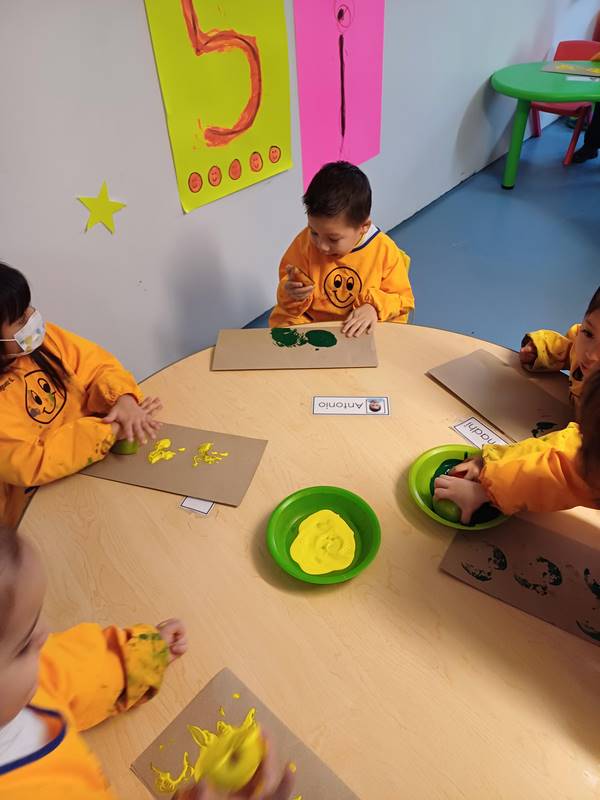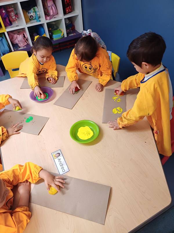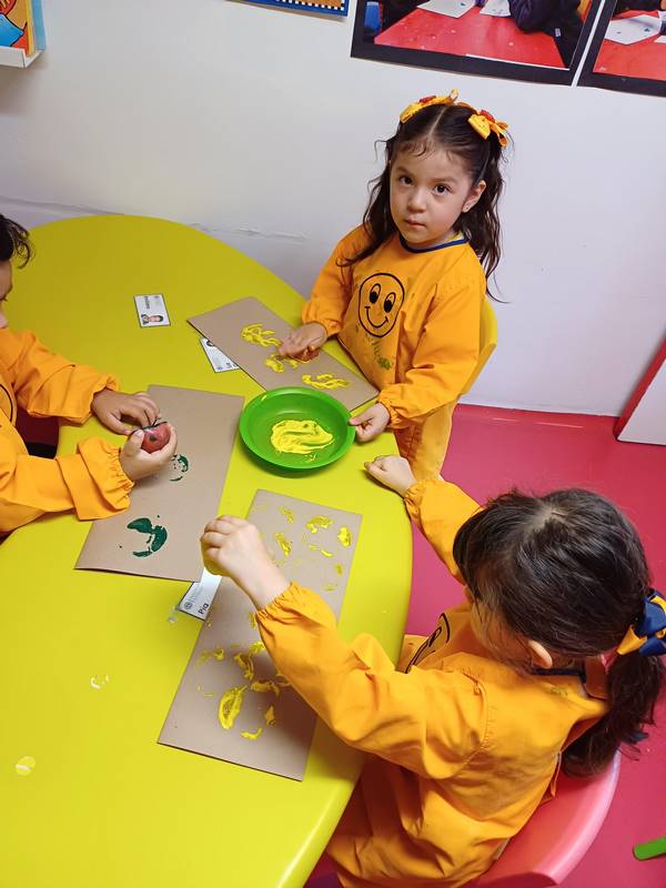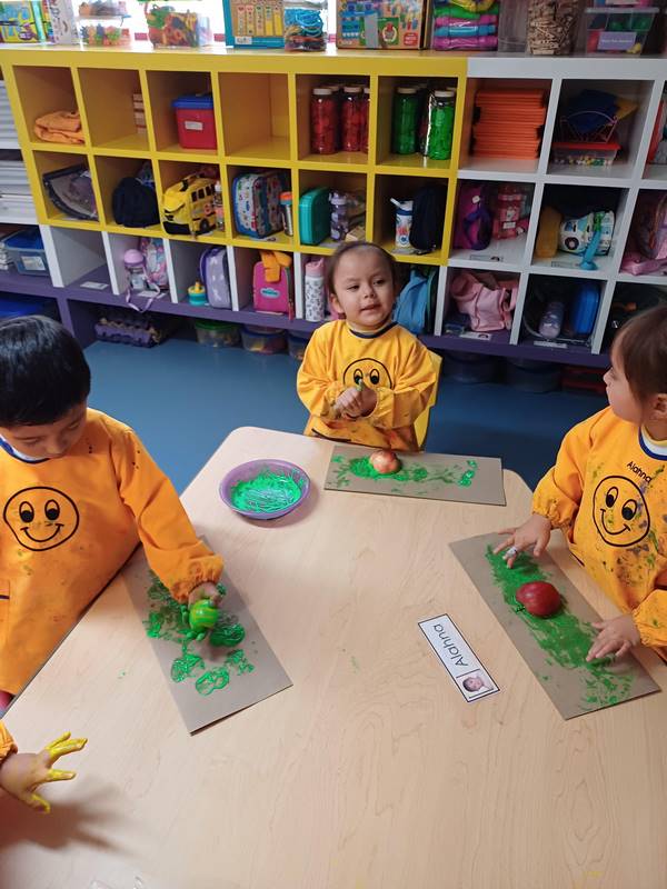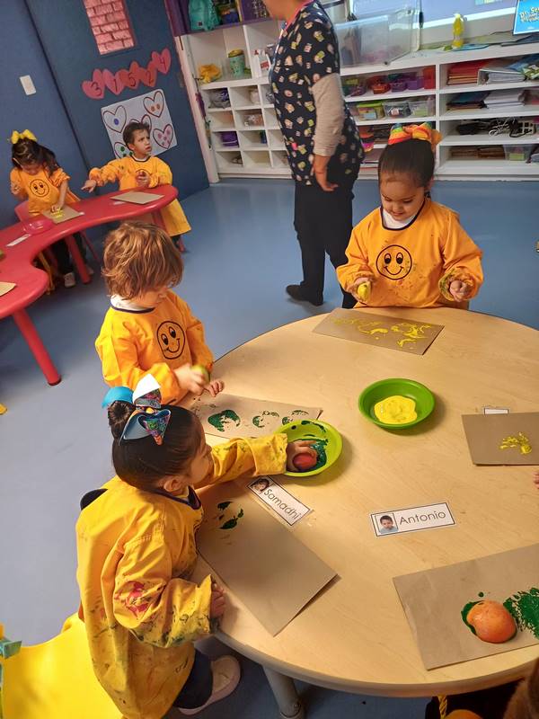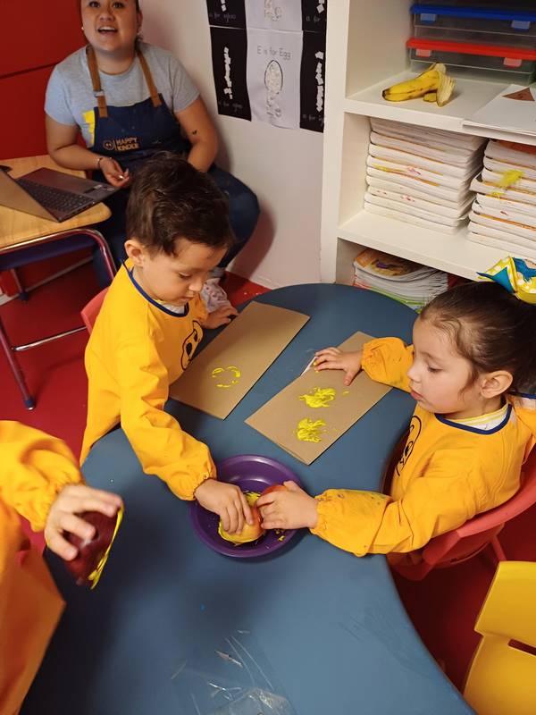 En K1, leímos la historia “Apples Up on Top”, en la que los niños repasaron los números del 1 al 10. Fuimos al light lab para hacer una actividad de matemáticas. Los niños eligieron un personaje de la historia y colocaron 10 manzanas sobre sus cabezas tal como en el cuento, y tuvieron que contar manzana por manzana para llegar a 10.