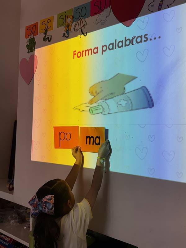 A una de las actividades realizadas durante este mes la llamamos “construyendo palabras”, la cual tuvo como objetivo consolidar la conciencia silábica. Este concepto ayudará a nuestros alumnos en la consolidación del aprendizaje de la lectura y escritura, favoreciendo la capacidad de reconocer y manipular las sílabas que componen las palabras, una habilidad que es fundamental para decodificar las palabras escritas y comprender la relación entre los sonidos y las letras.