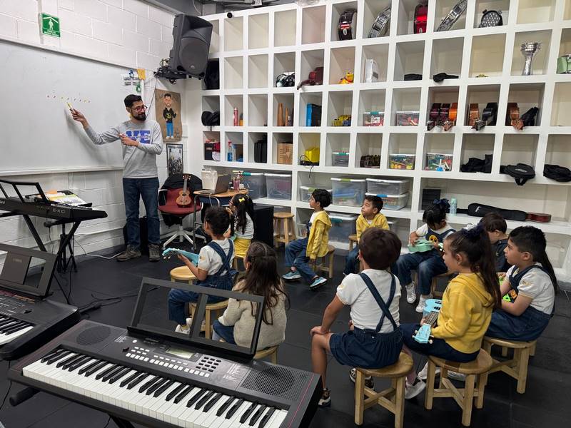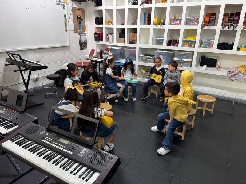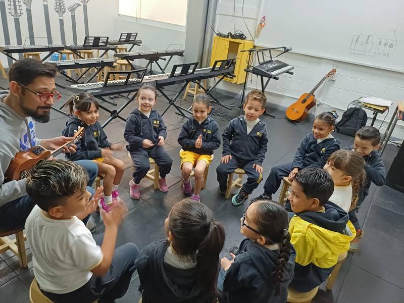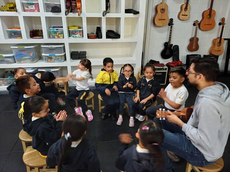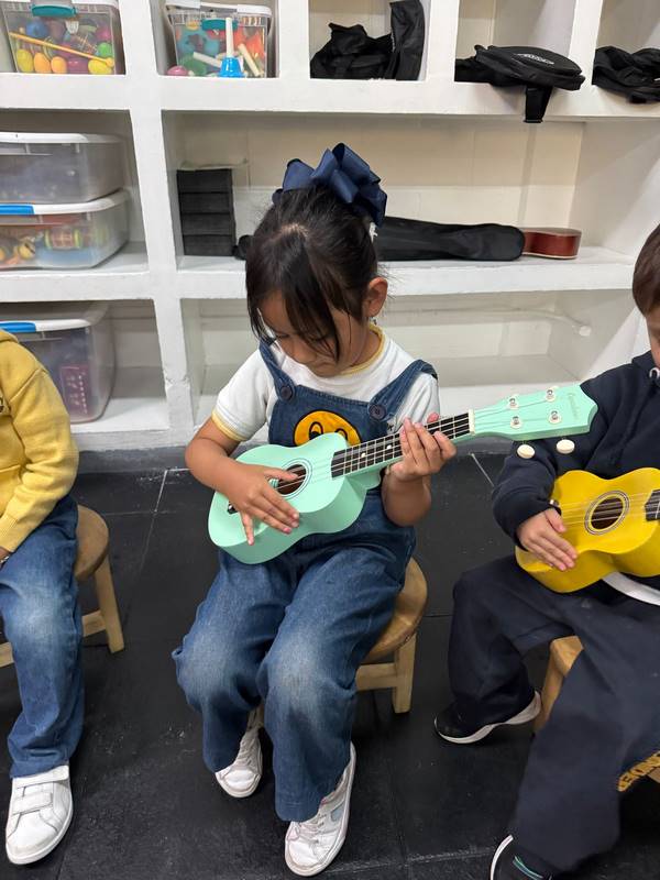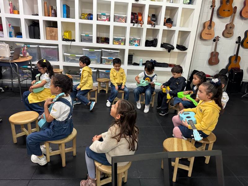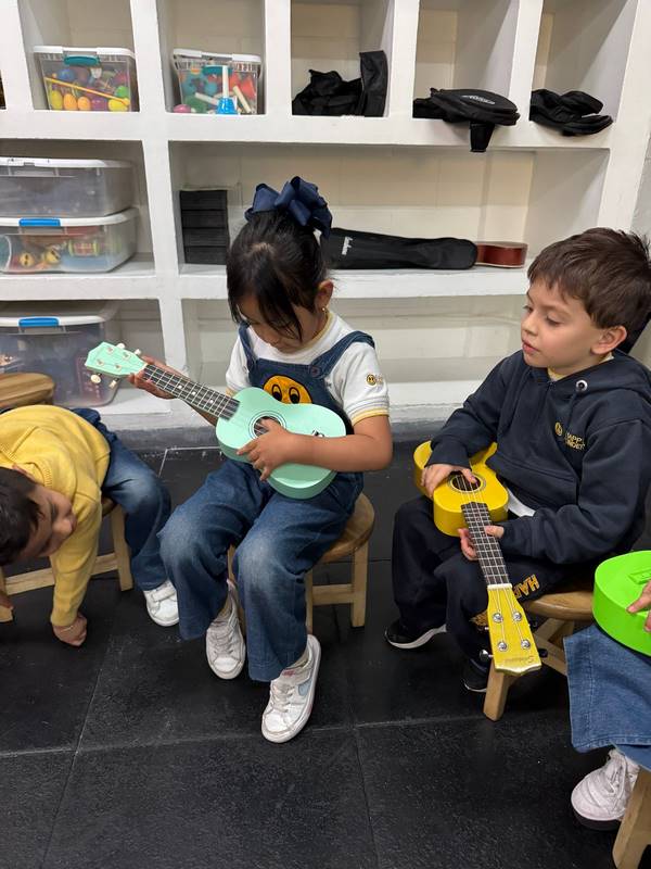 En la clase de música de Kinder 3, nuestros pequeños músicos exploran el mundo de los sonidos con alegría y creatividad. Cantan, juegan e interactúan con diversos instrumentos como: teclado, xilófono, percusiones y ukulele.