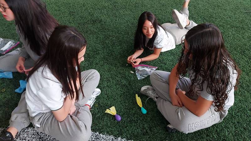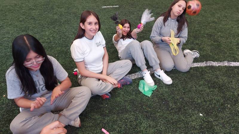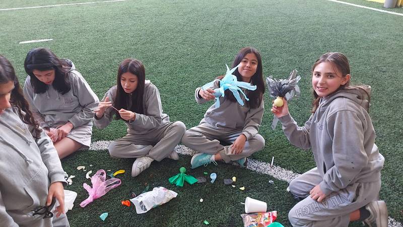 Los estudiantes solo utilizaron bolsas de plástico y globos. Con ingenio y trabajo en equipo, transformaron estos desechos en coloridos y funcionales implementos deportivos.