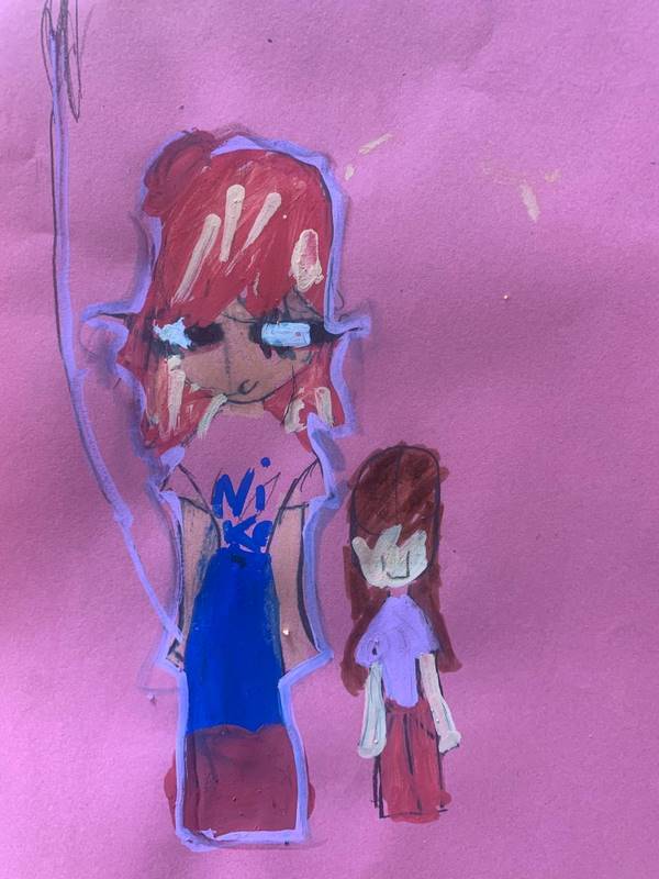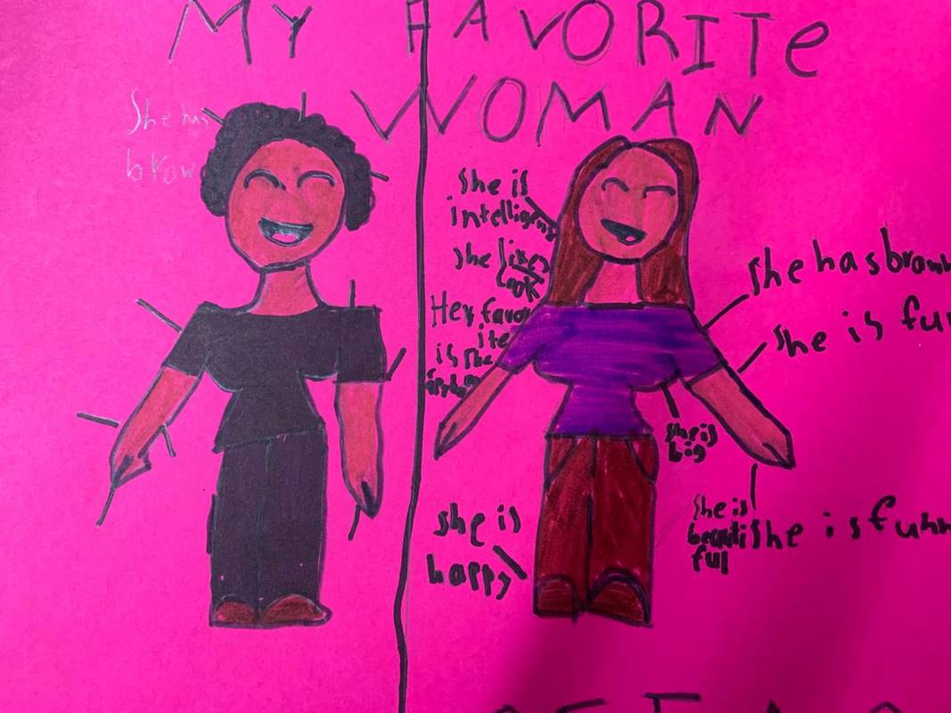 Students were handed out a pink or purple paper in which they were asked to choose their favorite woman and draw her on the center of the page.