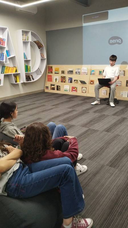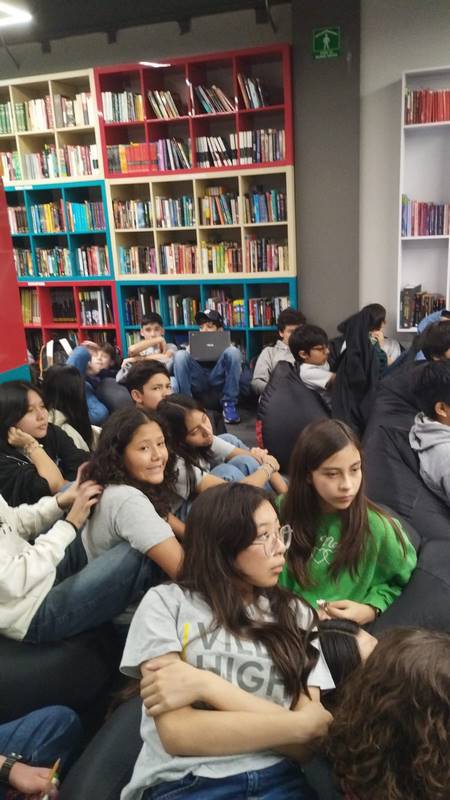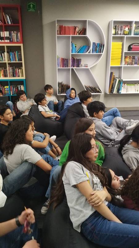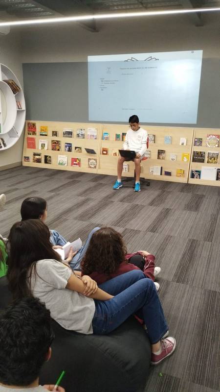 Los cinco mejores cuentos de cada grupo se expusieron en el patio techado. Después, los autores leyeron sus creaciones a los grupos de primer grado, creando gran interés.