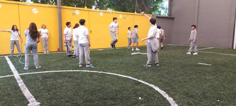 La semana pasada los alumnos de Villa High también practicaron usando la cuerda, y hubo retos para ver cuales grupos hacían más saltos. Se explicó el uso de la cuerda en boxeo para practicar periodos de ejercicios intensos.