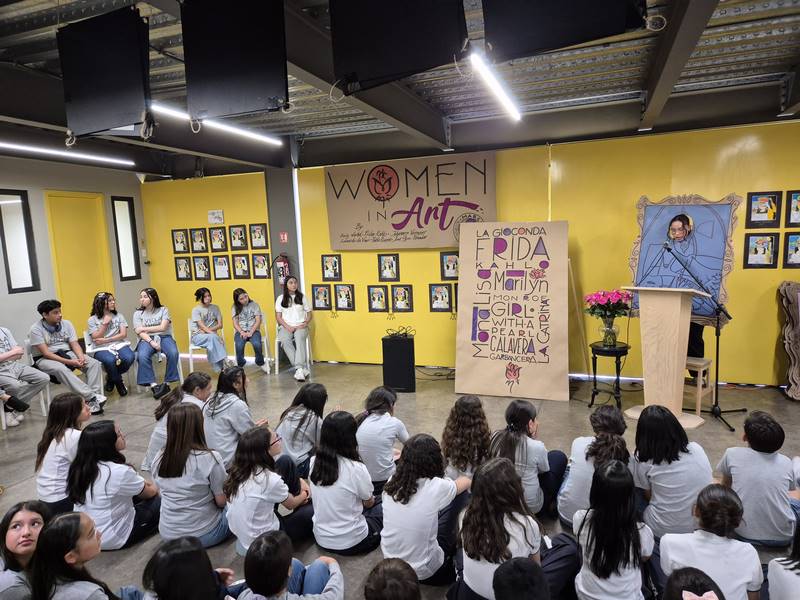 Para explicar cada una de las obras incluidas en el “collage”, se eligieron a 6 alumnas de los tres grados. Ellas personificaron a “La Mona Lisa”, “La Joven del Arete de Perla”, “Marilyn Monroe”, “Frida Kahlo”, “La Calavera Garbancera” y la madre con su bebé en “Guernica”.