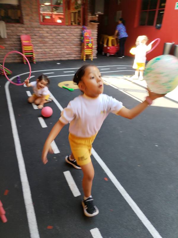A través del juego, estamos ejercitando habilidades motrices relacionadas con el tenis, el básquetbol y el voleibol. La diversidad de materiales permite que los pequeños realicen adaptaciones en su desempeño para acercarse de manera amigable a los fundamentos técnicos de estos deportes. Esto permitirá que nuestros pequeños puedan, próximamente, integrarse a una actividad deportiva con mayor éxito y seguridad.