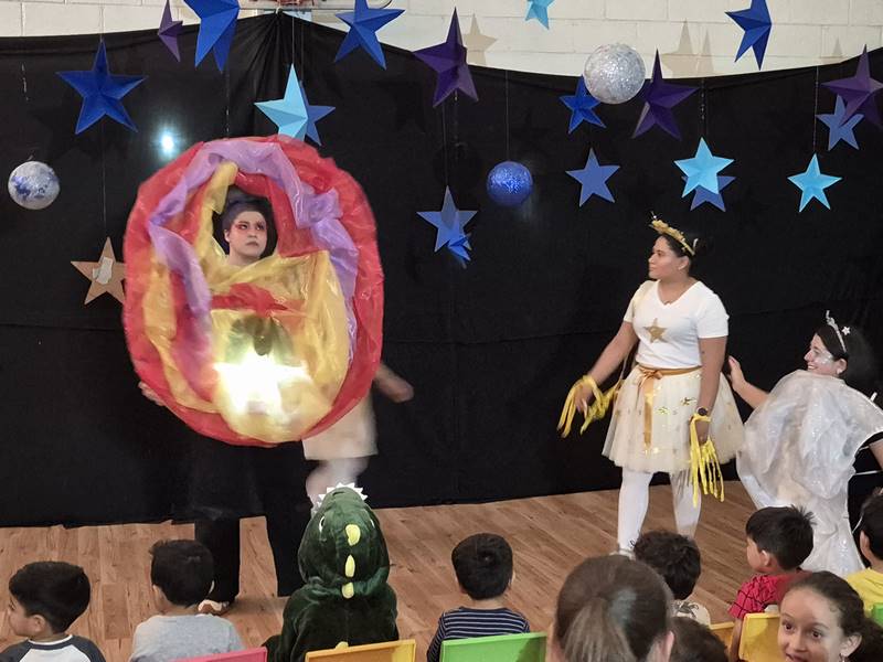 Los niños y sus familias tuvieron la oportunidad de disfrutar de dos cuentos interpretados por las maestras de Happy Kinder: “¿Cómo atrapar una estrella?” y “Nova, la devoradora de estrellas”.