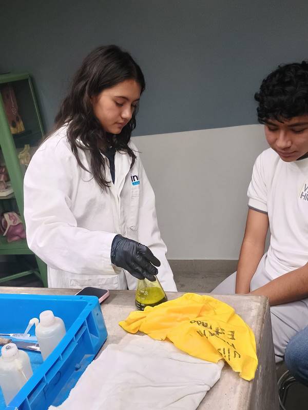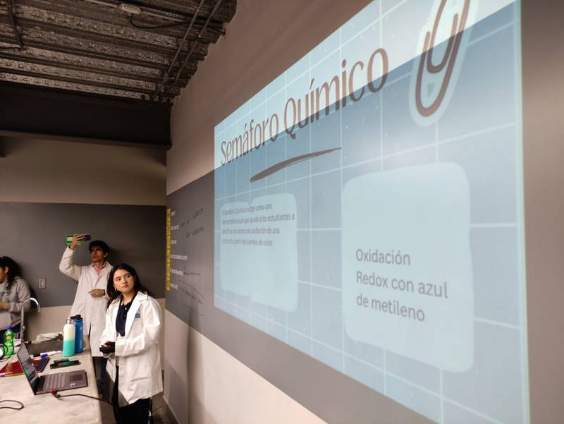 Vinieron a mostrar diversos experimentos llamativos a los alumnos de tercer grado; uno de ellos fue «el semáforo», que es una reacción de oxidación-reducción. También llevaron a cabo el experimento «pasta de dientes de elefante», la cual es una reacción de descomposición.