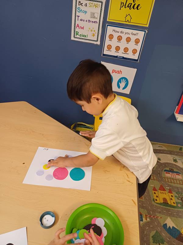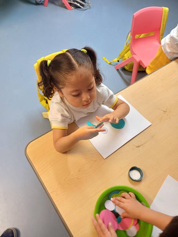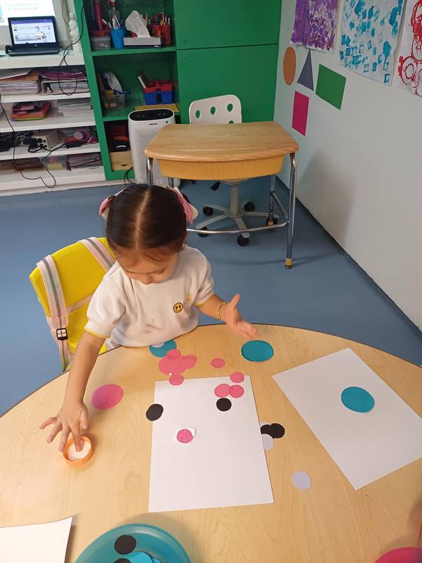 In our Literacy class, we are reading “The Dot,” a book that encourages confidence and creativity in kids. This book is full of colors: a red dot, a purple dot, a yellow dot, a big pink dot, and a little green dot, allowing kids to discover that mixing colors could make new colors. For the new Reggio Project, K1 students are experimenting with colors, this book complements this project.
