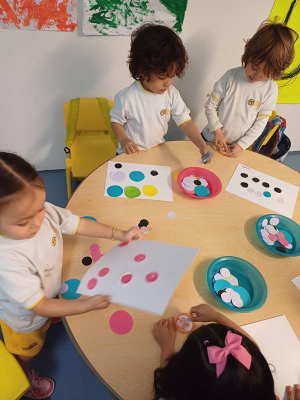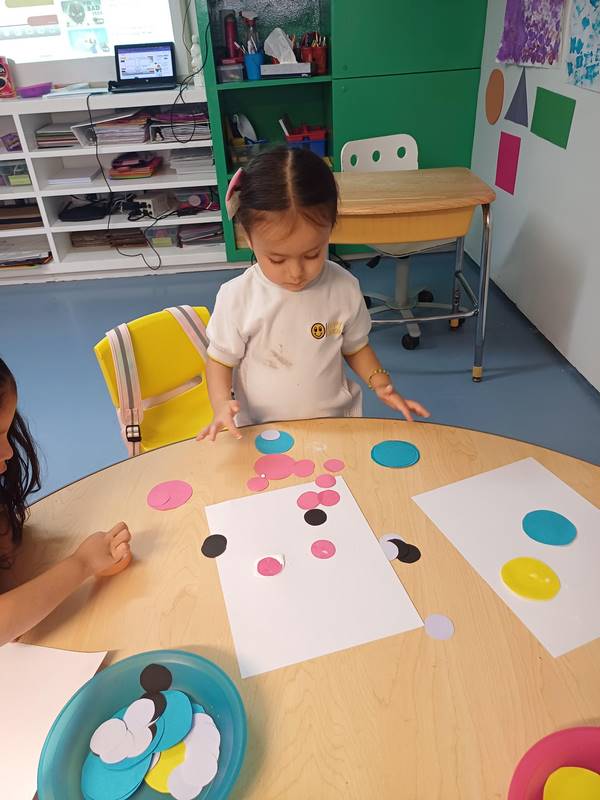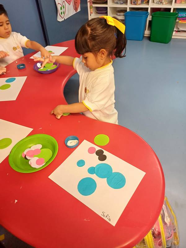 En nuestra clase de Literacy estamos leyendo «The Dot», un libro que fomenta la confianza y la creatividad en los niños. Este libro está lleno de colores: un punto rojo, un punto morado, un punto amarillo, un punto rosa grande y un punto verde pequeño, lo que permite a los niños descubrir que mezclar colores puede crear nuevos. Para el nuevo proyecto Reggio, los alumnos de K1 están experimentando con los colores; este libro complementa dicho proyecto.