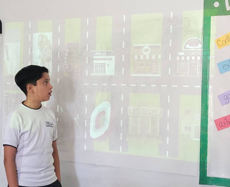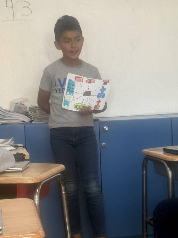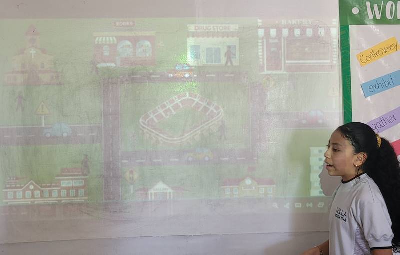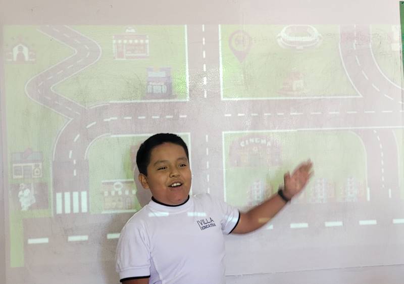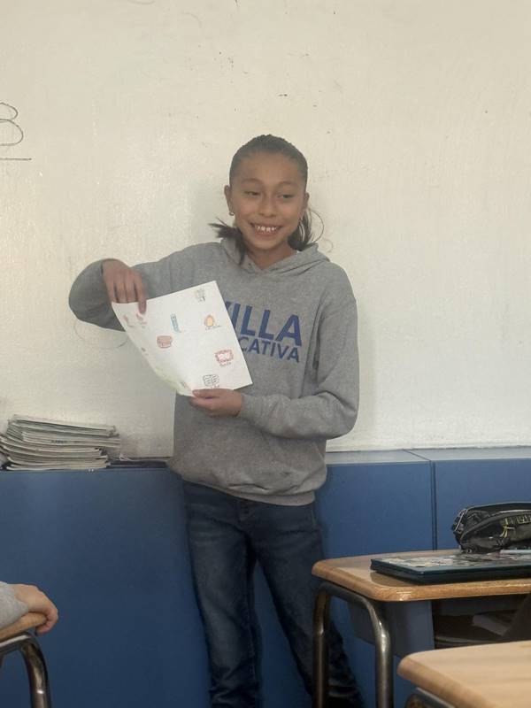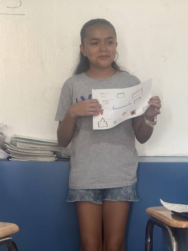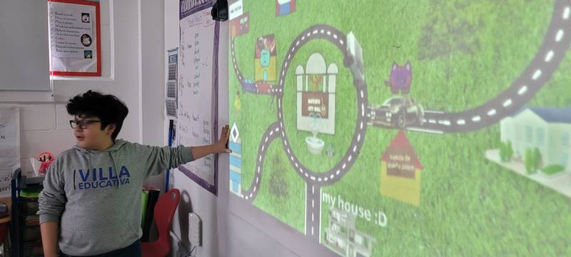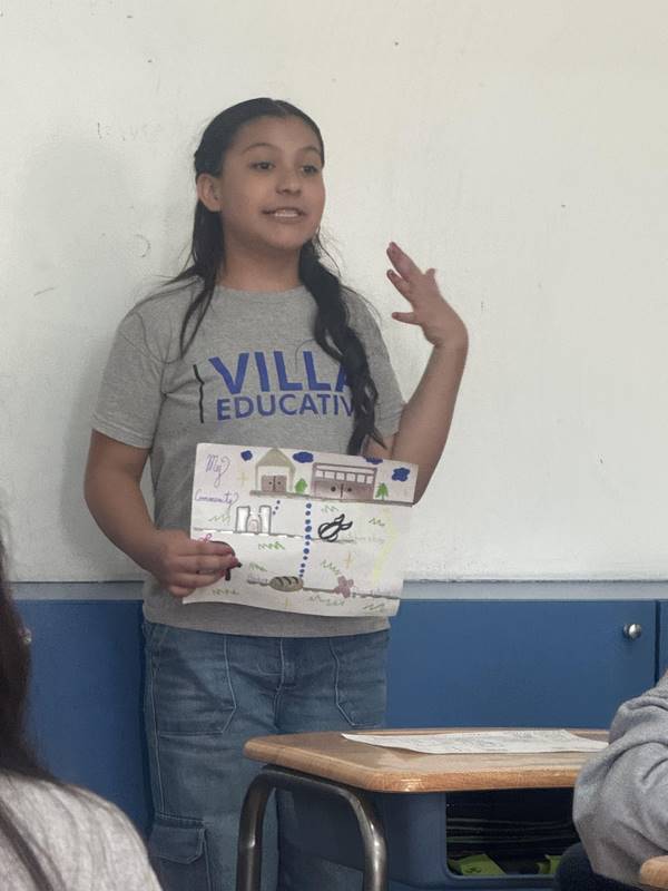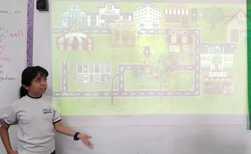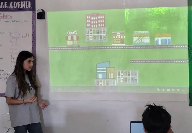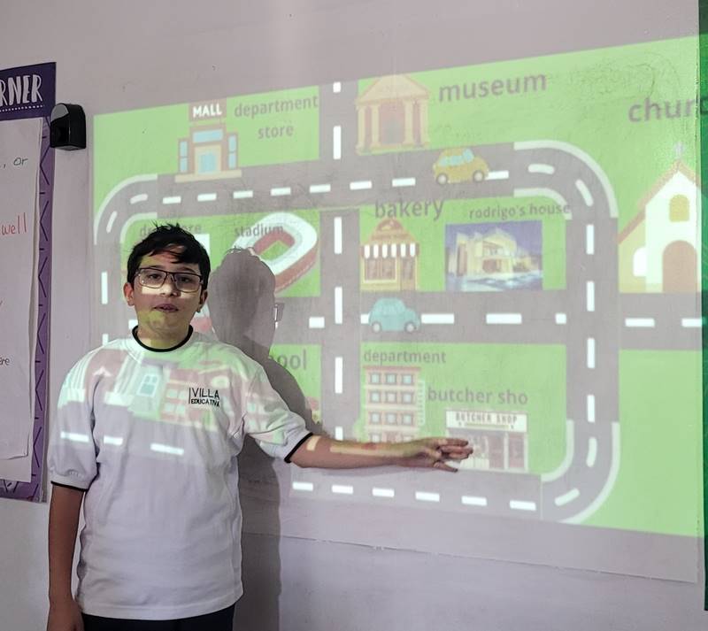 Después de diseñar sus comunidades ideales, los estudiantes pasaron al frente de la clase para presentar sus trabajos. Explicaron qué lugares incluyeron —tales como librerías, estadios, cines y teatros— y describieron cómo los organizaron. Algunos optaron por ubicar escuelas en zonas tranquilas, mientras que otros diseñaron áreas urbanas concurridas con mucho entretenimiento. ¡Lo mejor fue escuchar sus razones detrás de cada decisión!