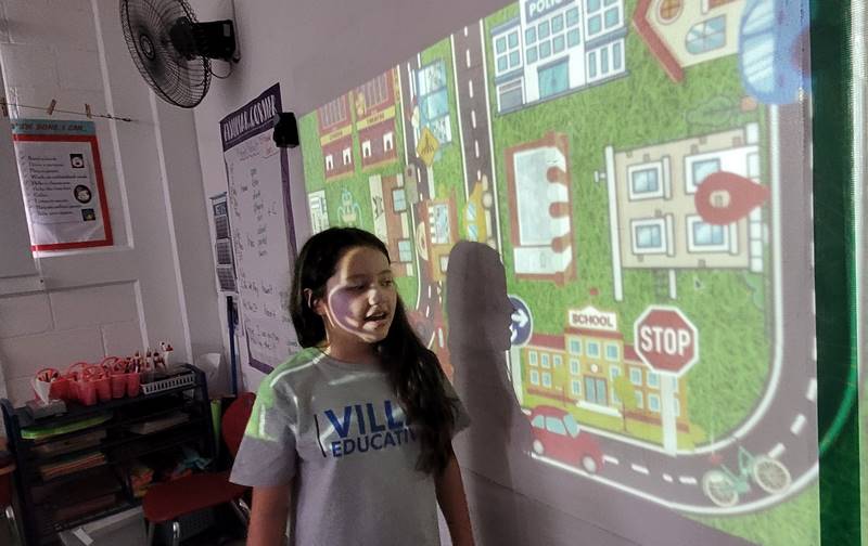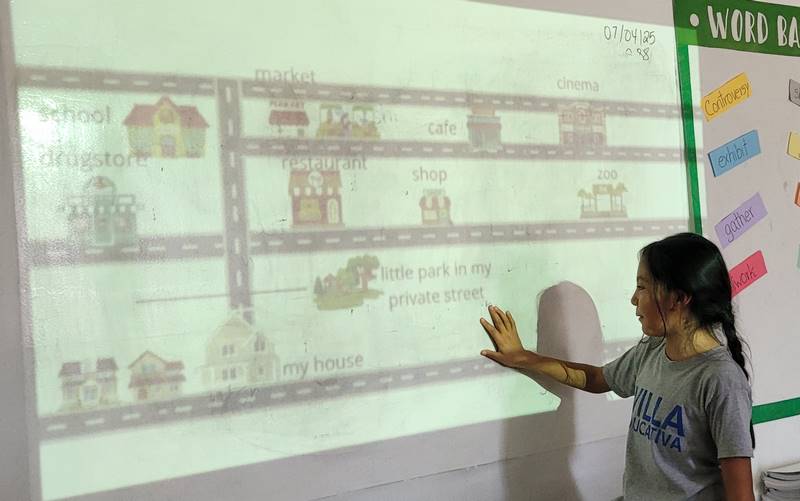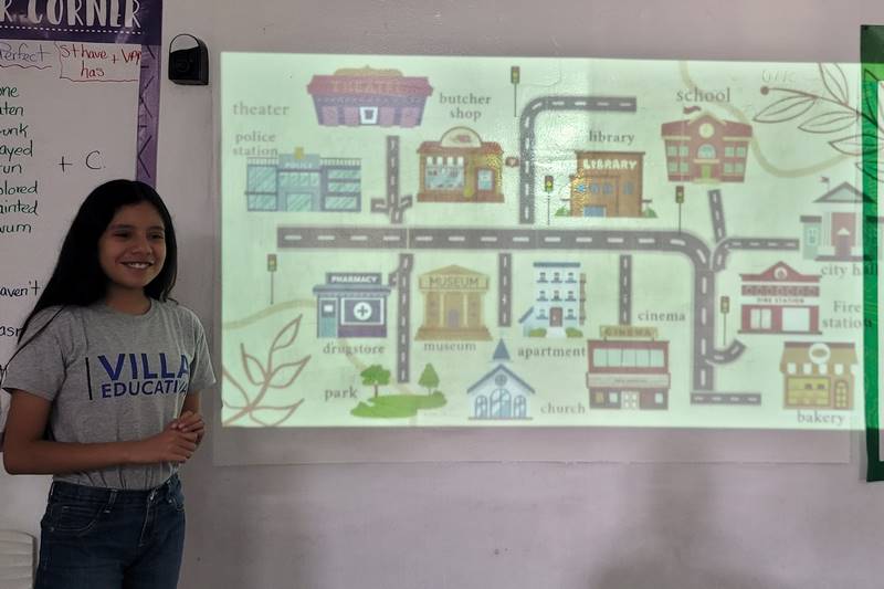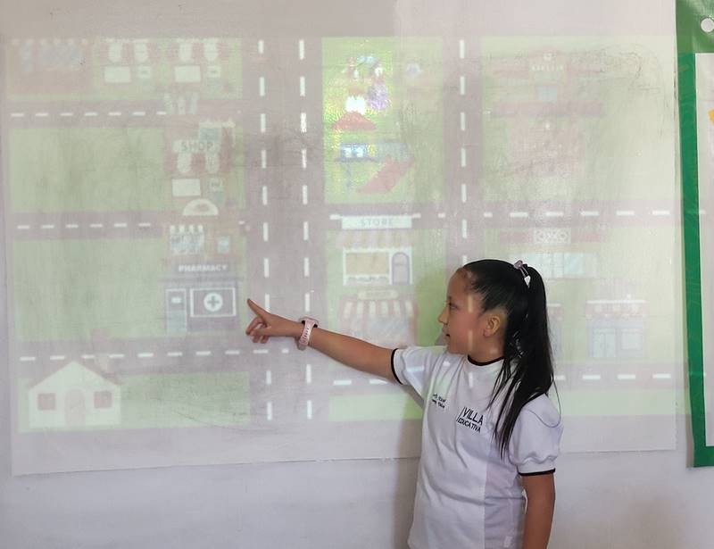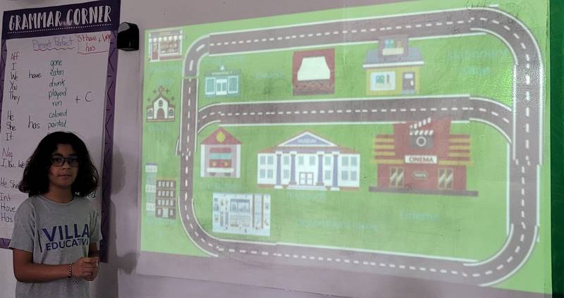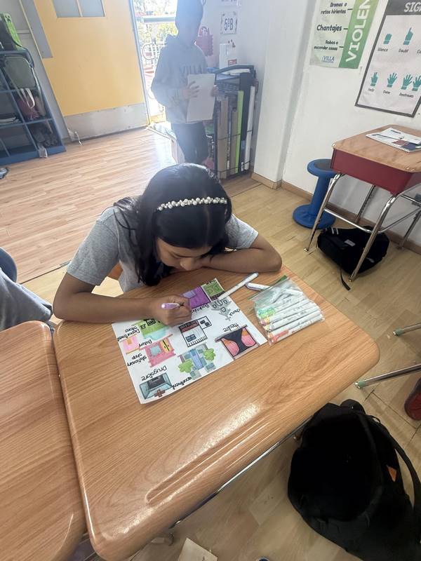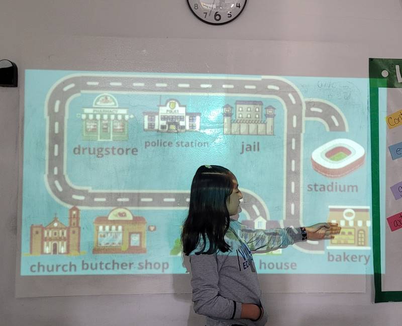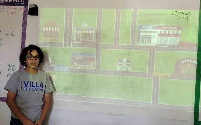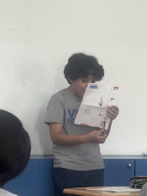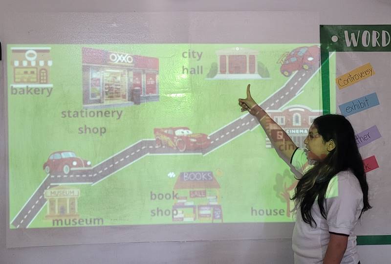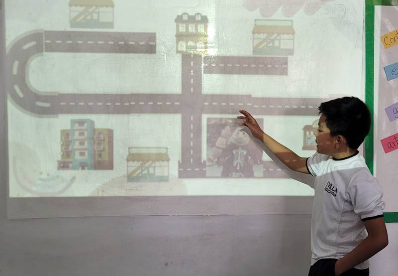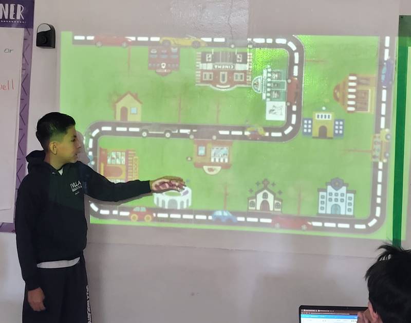 Después de diseñar sus comunidades ideales, los estudiantes pasaron al frente de la clase para presentar sus trabajos. Explicaron qué lugares incluyeron —tales como librerías, estadios, cines y teatros— y describieron cómo los organizaron. Algunos optaron por ubicar escuelas en zonas tranquilas, mientras que otros diseñaron áreas urbanas concurridas con mucho entretenimiento. ¡Lo mejor fue escuchar sus razones detrás de cada decisión!