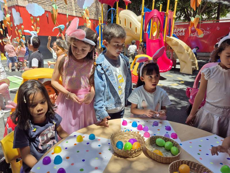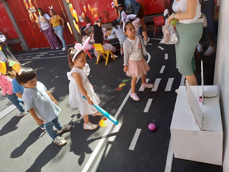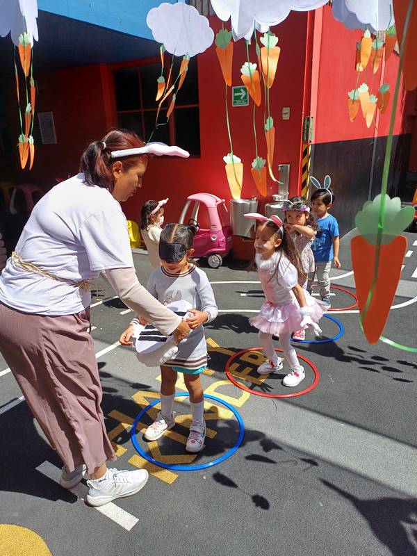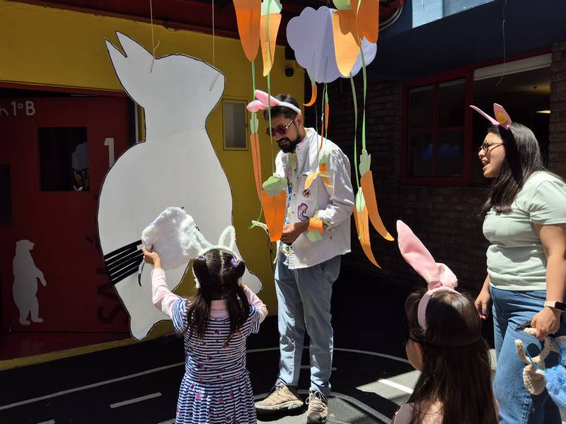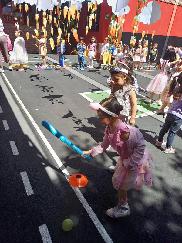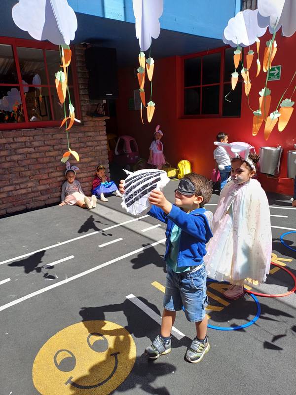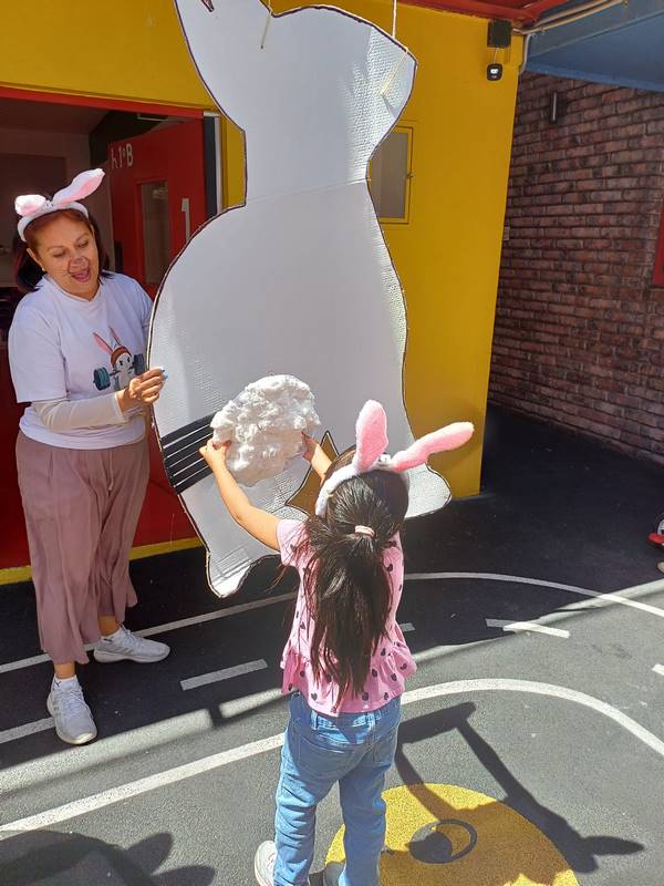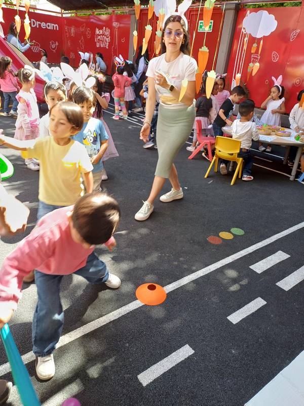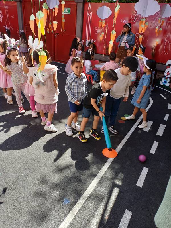 Antes de irnos de vacaciones, celebramos la Pascua con una fiesta de conejitos. ¡Niños y maestros se vistieron de colores claros y con orejas de conejo! Los maestros prepararon actividades increíbles para hacer en el salón de clases. Durante el recreo, los niños tuvieron que alimentar a un conejo con pelotas de colores; con los ojos vendados, los pequeños le pusieron la cola a un conejito y se sorprendieron al ver en qué lugares le pusieron la colita. También, resolvieron un rompecabezas donde debían unir los huevos de Pascua con los puntos del mismo color; al ganar, se llevaban una sticker de conejito. Al final del día, todos se llevaron una zanahoria para hacer burbujas y empezar a disfrutar sus vacaciones.