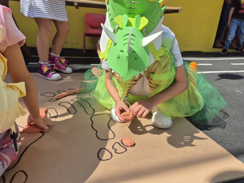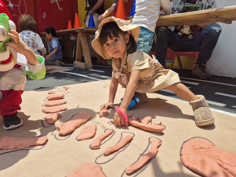 El martes pasado celebramos el Día del Niño con una fiesta de dinosaurios. Los niños se divirtieron intentando descongelar huevos de dinosaurio con diferentes objetos y sustancias. Se convirtieron en paleontólogos y descubrieron dos esqueletos de dinosaurio, pero había un problema: tenían que colocar todos los huesos en el lugar correcto para formar el dinosaurio.