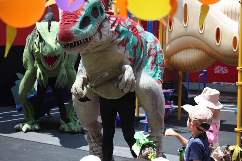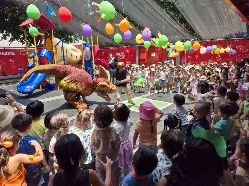Last Tuesday, we celebrated Children’s Day with a Party Saurus! Kids had fun trying to unfreeze dinosaur eggs with different objects and substances. They became paleontologists and discovered 2 dinosaur skeletons, but there was a problem: they had to place all the bones in the correct spot to form the dinosaur. In another game, kids had to follow the dinosaur tracks to find a triceratops. The most exciting part was when dinosaurs visited our Happy Kinder; kids helped to train them, had the opportunity to touch them, and even danced with them! Teachers were scared of those dinosaurs, but kids were thrilled to see them!