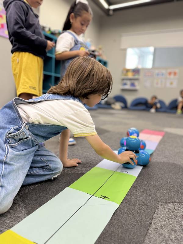 In our Coding class, we brought the story into the digital world with Dash, our robot friend, who helped represent René’s jumps along the number line. The children were thrilled to see their learning come to life through technology!