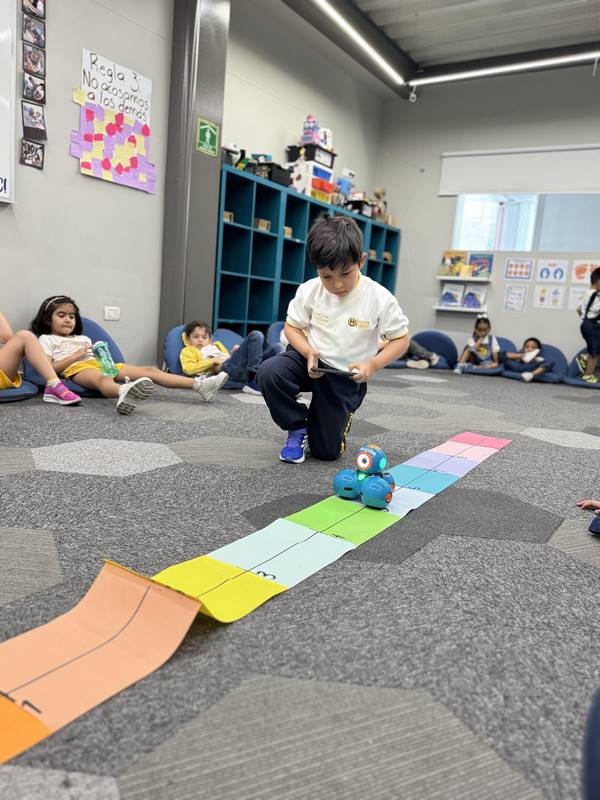 Además, en nuestra clase de Coding, llevamos la historia al mundo digital con Dash, nuestro robot, quien ayudó a representar los saltos de la rana René en la recta numérica. ¡Los niños estaban fascinados viendo cómo su aprendizaje cobraba vida con la tecnología!