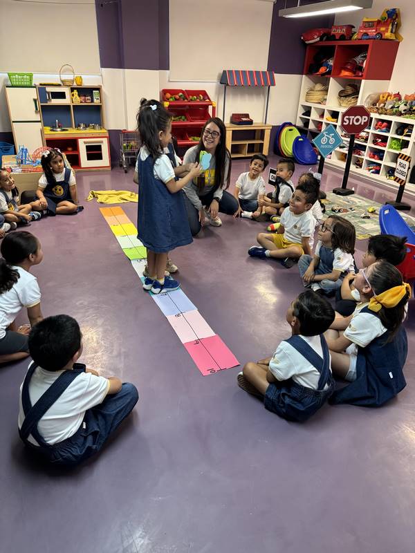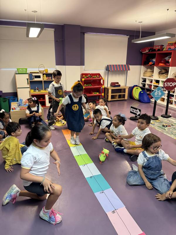 Esta semana, nuestros alumnos de Kinder 3 vivieron una experiencia llena de aprendizaje y movimiento a través de una divertida historia: La rana René y su gran antojo de mosca. Usando la recta numérica como escenario, los niños se convirtieron en ranas y moscas, y con mucho entusiasmo saltaron de número en número, explorando cantidades, posiciones y los primeros pasos hacia la suma.
