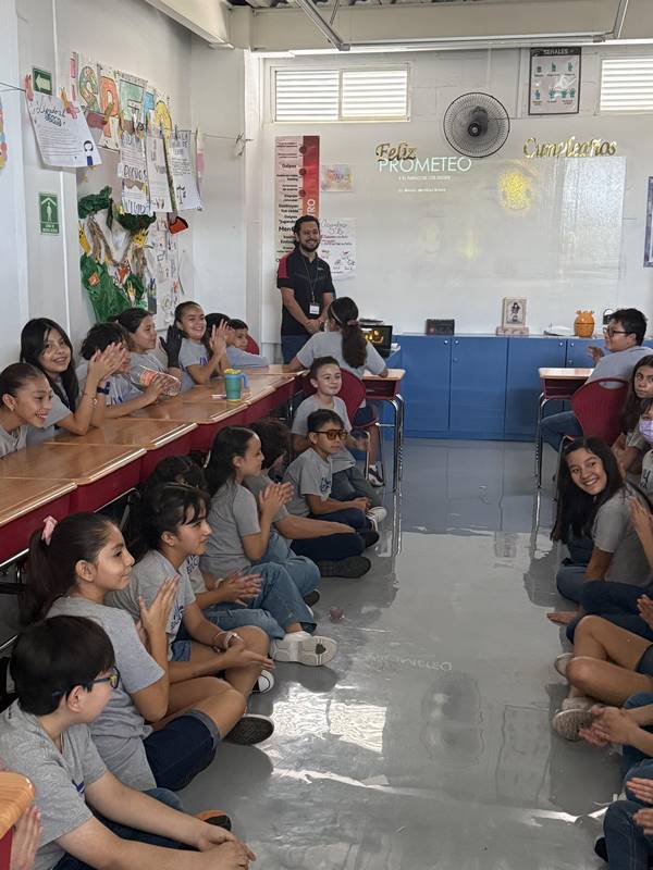 Como parte de los procesos de desarrollo de aprendizaje en quinto grado en “Lenguajes”, tenemos un proyecto llamado ¡Vamos al rescate!, el cual consiste en leer, investigar, checar características, relatar e indagar mitos y leyendas. Para ello, tuvimos la visita de un familiar Paula Enciso de 5°A, su tío nos relató un mito llamado ”Prometeo”; los alumnos estuvieron muy atentos, incluso, nos compartió que había tallado en plata a uno de los personajes principales y lo mostró en el grupo.