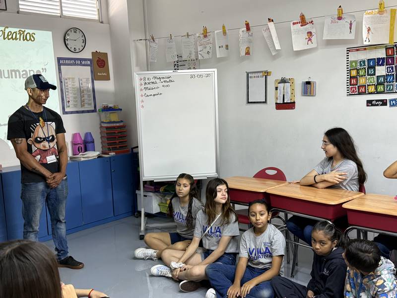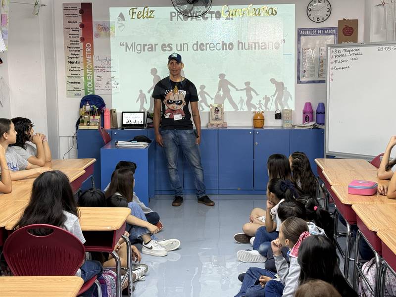 Para enriquecer más el contenido, tuvimos la oportunidad de que la alumna Camila López de 5°A y su mamá, nos consiguieran una entrevista con Diego, un migrante venezolano, el cual asistió a nuestro salón de clases dando testimonio de su travesía desde Venezuela hasta Estados Unidos, relatando las experiencias vividas en este gran viaje, los peligros, los sueños, las detenciones y las esperanzas de un futuro.
