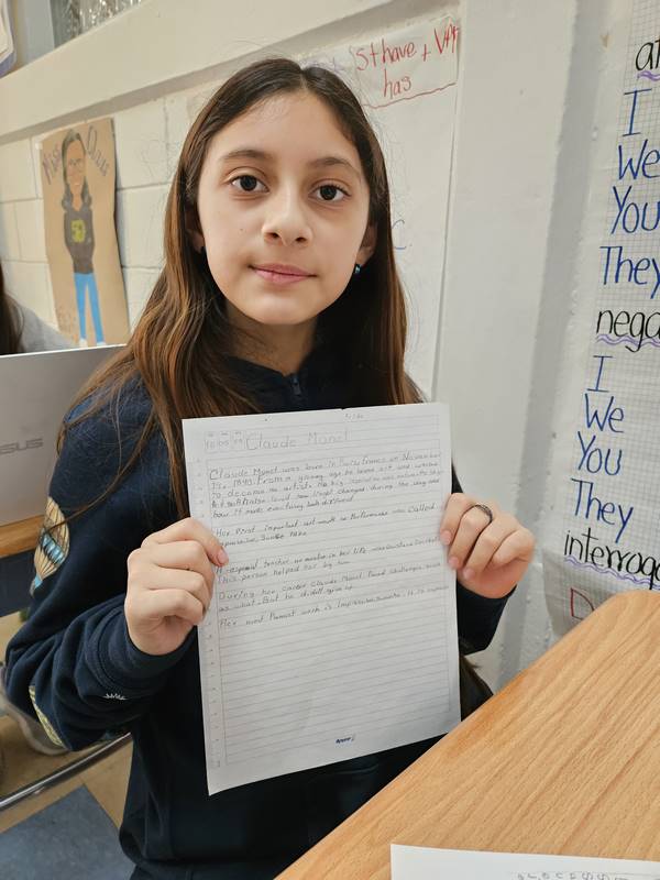 Our students are making great progress in their Atelier project titled Art for Everyone! In this stage of the project, each student chose an artist and, with the help of AI, held an interview with them. Using the information from the interview, they wrote a short biography about the artist’s life and work.
