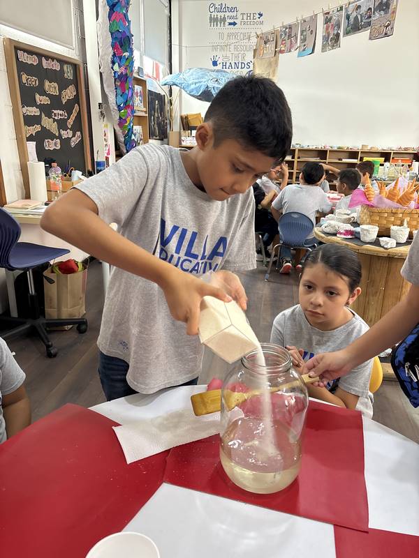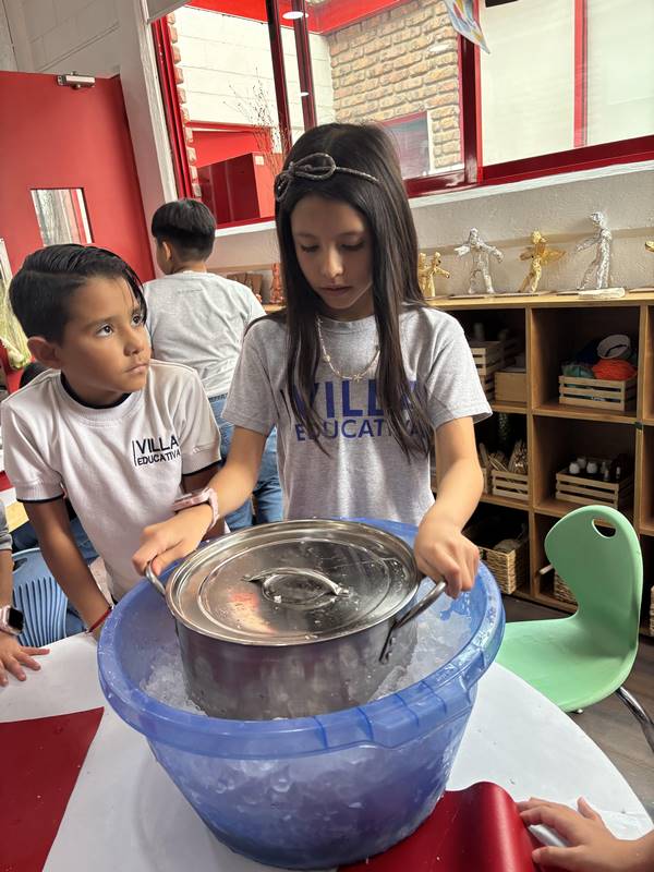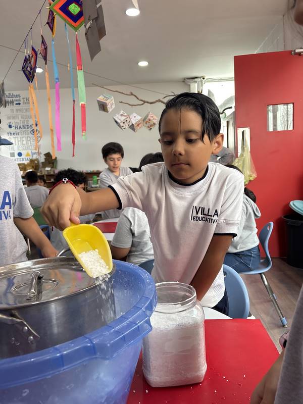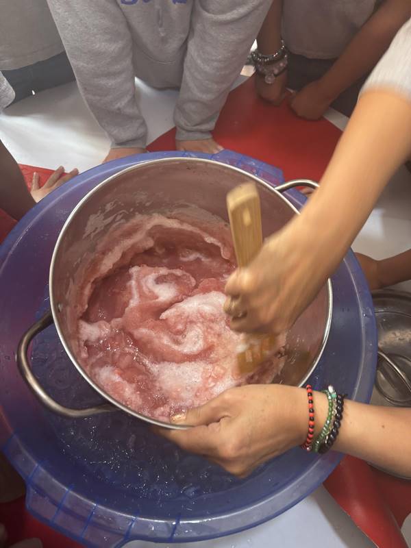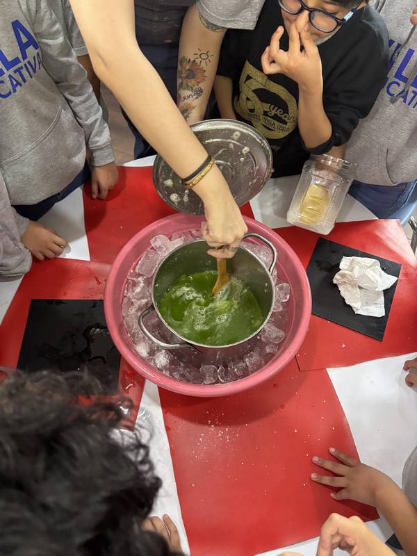 Como parte de nuestro proyecto de Atelier sobre la materia, preparamos una actividad que generó mucha curiosidad y entusiasmo entre nuestros estudiantes de tercer grado. Los alumnos crearon una mezcla y cambiaron el estado de la materia de líquido a sólido, no poniendo el agua en un congelador, sino bajando la temperatura y centrifugando un líquido para crear un helado realmente delicioso.