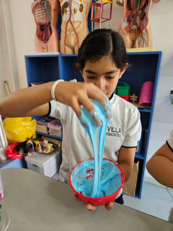 Uno de los momentos más divertidos fue cuando exploramos un fluido no newtoniano: ¡El slime! A través de esta actividad, los chicos descubrieron que la materia no siempre se comporta como esperamos, y que la ciencia también puede ser pegajosa y divertida.