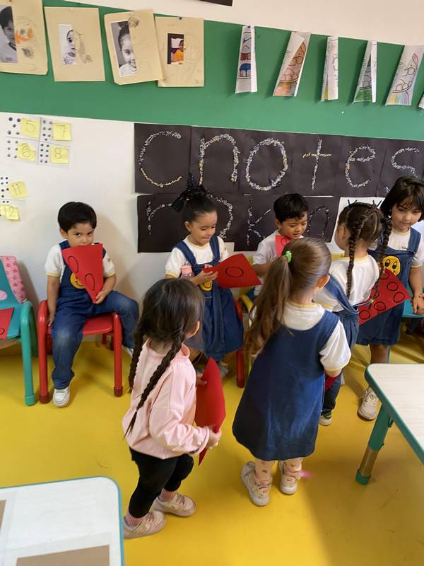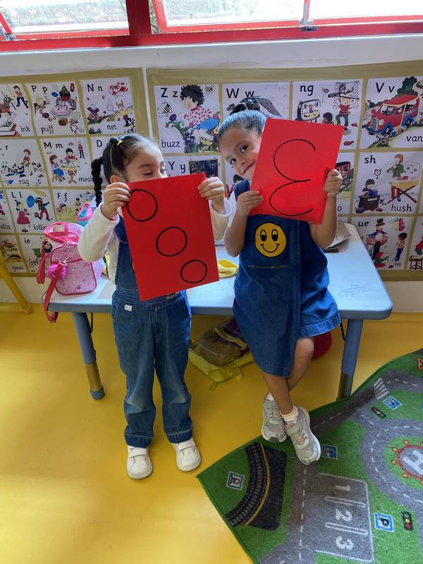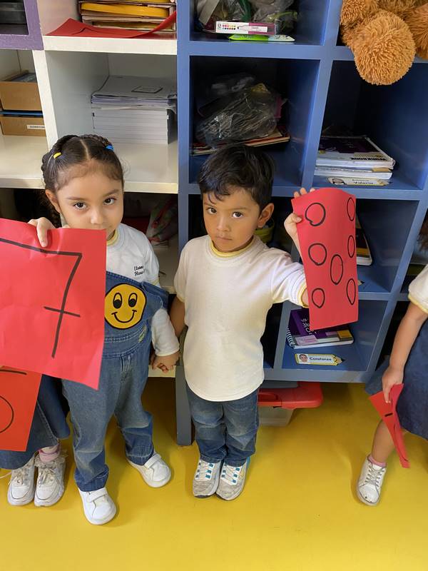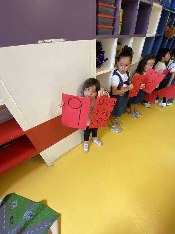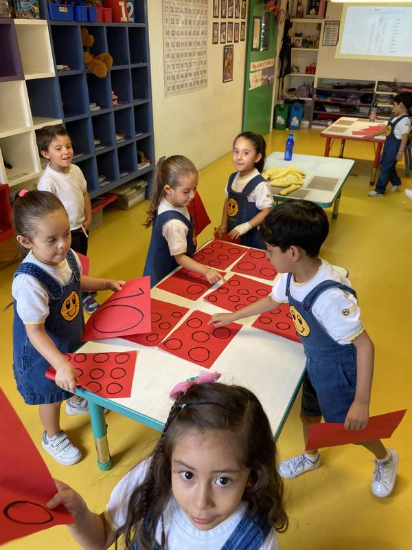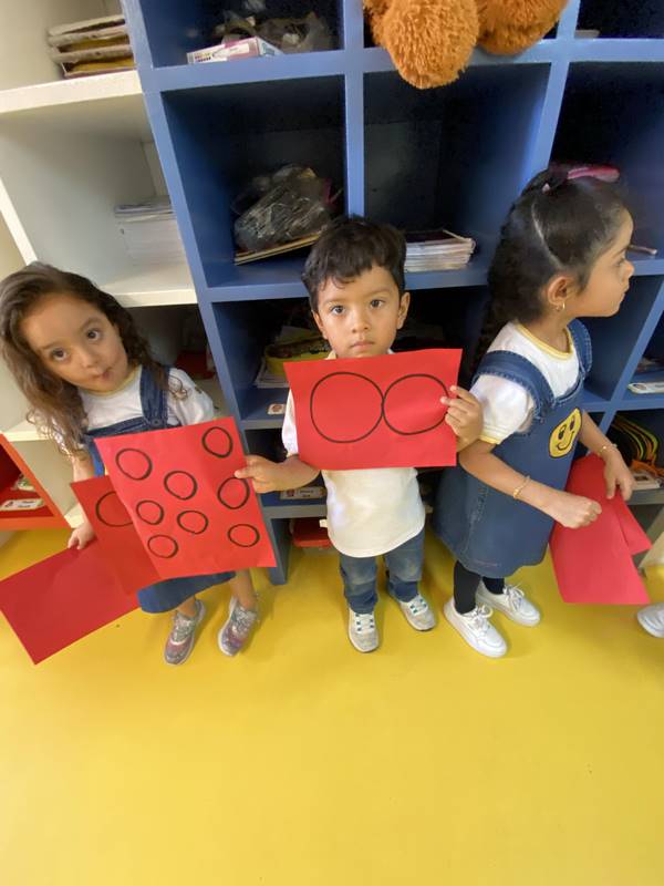 - El reto dos consistió en lo siguiente: Los equipos eran los mismos, pero en esta ocasión colocamos los números y los círculos en dos mesas diferentes. Primero, seleccionaron el número que más les gustaba y después buscaron en la segunda mesa la hoja con la cantidad de círculos correspondientes. En esta ocasión, los alumnos jugaron contrarreloj.