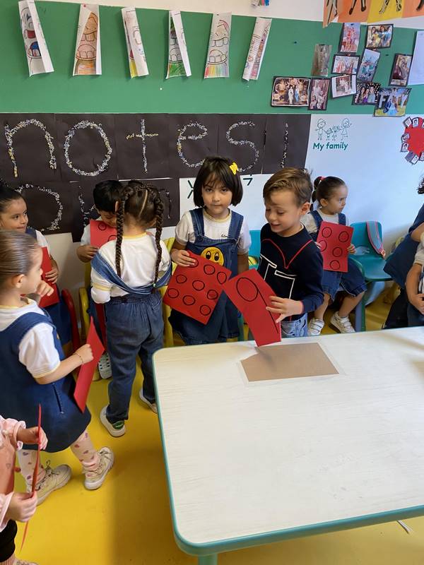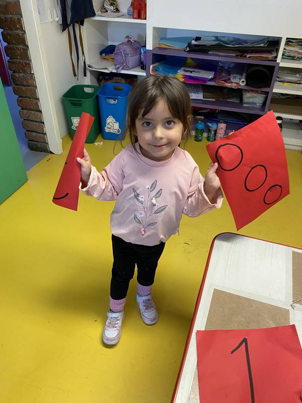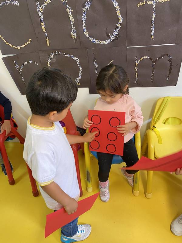 - The second challenge involved the same team, but this time we placed the numbers and circles on two different tables. First, each student picked a number, and then they found the sheet with the same number of circles on the second table. This time, the students competed against time.