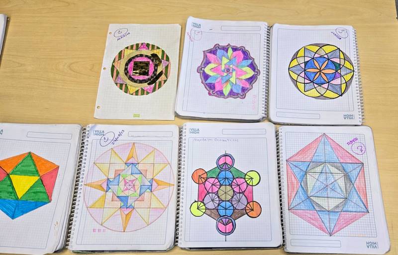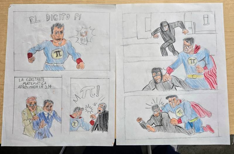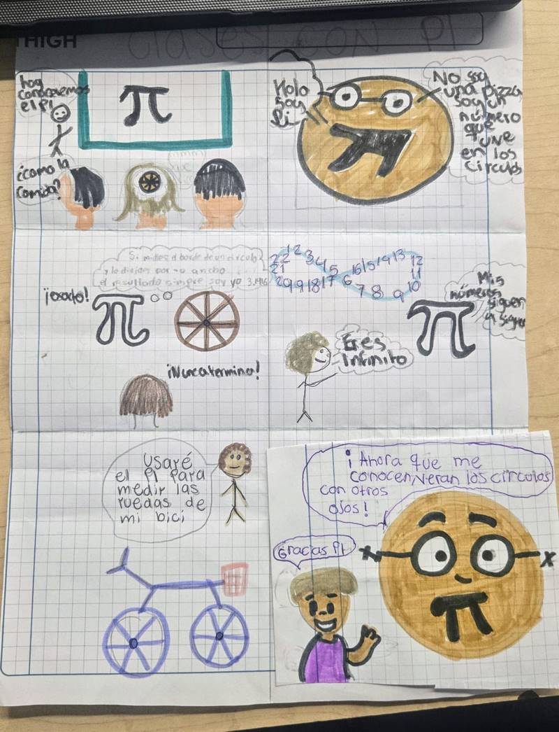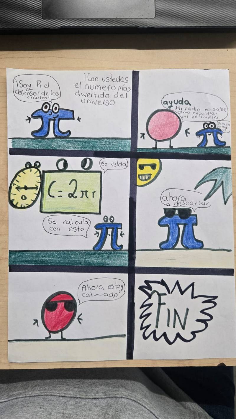 La semana pasada en clase, los alumnos de 1ro trabajaron en un cómic enfocado a Pi y los mándalas, con los temas de cuadriláteros, triángulos y ángulos.