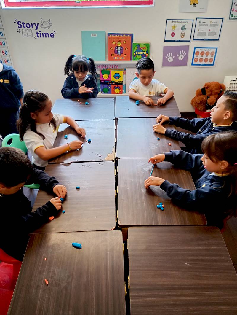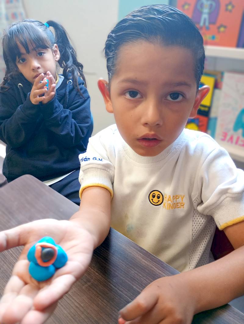 En la clase de Coding, los niños de K3 elaboraron un paracaídas como parte de un proyecto inspirado en el enfoque Reggio Emilia. Modelaron a Dash con plastilina y lo acompañaron con un paracaídas hecho de hule y materiales ligeros. A través del juego, la exploración y el arte, los niños imaginaron que Dash regresaba de una misión espacial y debía aterrizar con suavidad en la Tierra. Con la ayuda de una sopladora de aire, experimentaron cómo los materiales influyen en el descenso. Esta actividad fomenta el pensamiento científico, la expresión artística, la resolución de problemas y el trabajo en equipo.