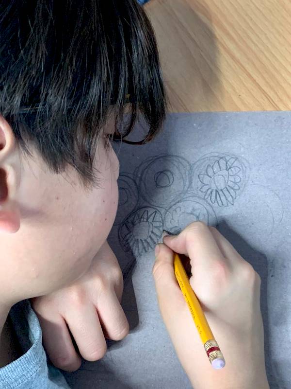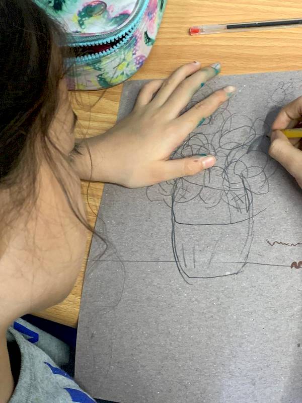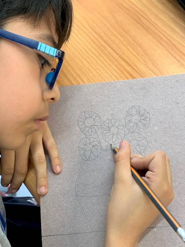 En clases anteriores, los alumnos ya tenían conocimiento de Van Gogh y pintaron su propia “Noche Estrellada”. Pero esta semana le dedicamos clases a otra de sus obras más famosas “Los Girasoles”. El profesor Roberto les enseñó cómo trazar el florero, diagramar los girasoles y darle forma a los pétalos y al follaje.