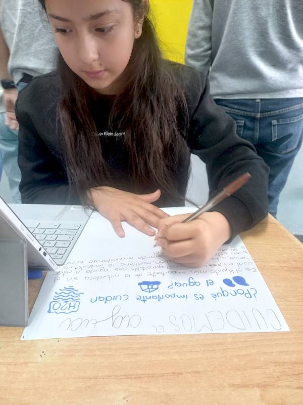 Reflexionaron críticamente sobre su consumo cotidiano y el concepto de «agua oculta», lo que generó mayor conciencia sobre su uso responsable. También analizaron el impacto de la contaminación hídrica y propusieron acciones concretas para su conservación, demostrando compromiso y entendiendo que, con organización, es posible cuidarla.
