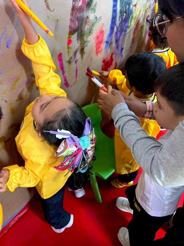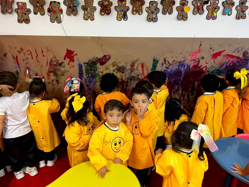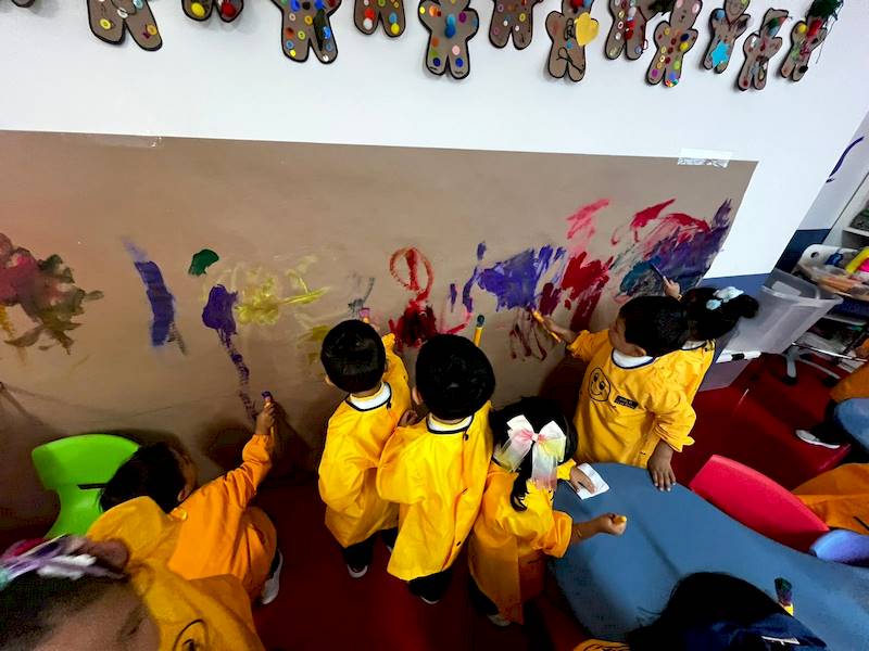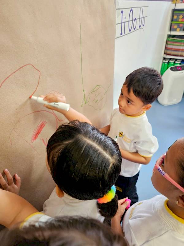 Adaptation in K1 is crucial for children to feel comfortable and happy in their new environment. Through mural painting, the little ones can express their emotions and creativity, which helps them to integrate better. Sharing materials fosters fellowship and cooperation, teaching them to respect and value others. In addition, knowing their new space and making friends gives them security and confidence to enjoy and learn every day.