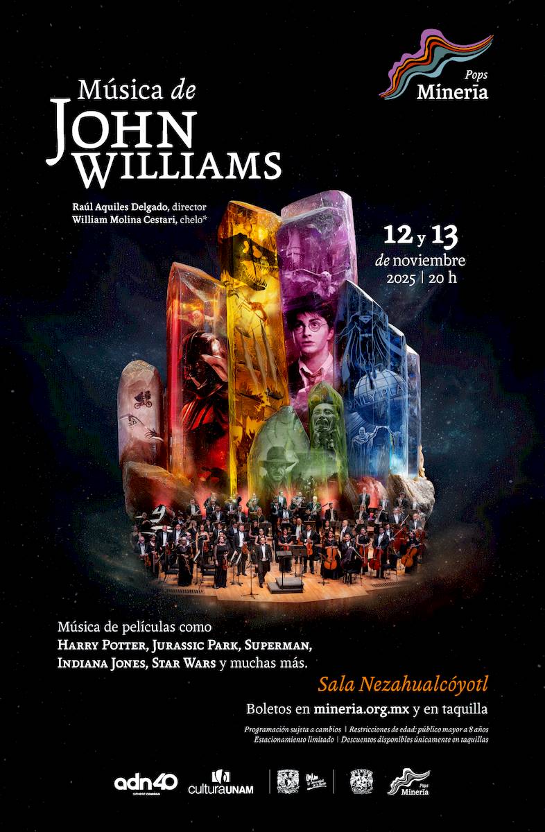 Ven a disfrutar las mejores canciones de tus películas favoritas como Harry Potter, E.T., Jurassic Park, Star Wars, Superman e Indiana Jones, entre otras, en un maravilloso concierto con La Sinfónica de Minería Pops y la música de John Williams.